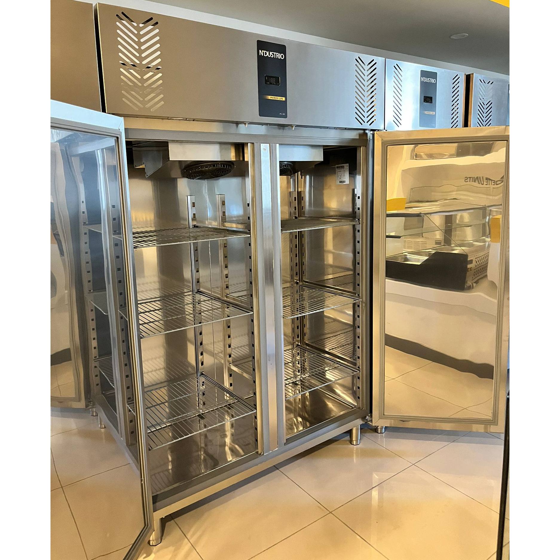 Premium-klassi kaubanduslik külmik restoranidele, hotellidele ja teistele keskmise kuni suure suurusega toitlustusasutustele. Hetkel suurepärane sooduspakkumine. Roostevabast terasest välis- ja sisekorpus. Jahutustemperatuur 0°C kuni +8°C. Kõrge jõudlus 43°C troopilistes tingimustes. Sisseehitatud puutetundlik digitaalne kontroller elektrooniliseks temperatuuri ja sulatuse juhtimiseks. Kõrge jõudlusega sisseehitatud LED-valgustus. Hügieeniline, spetsiaalselt pressitud uksekäepide. Lai sisemaht. Ukseraamis kuumakindel kaabeltüüp. Ise sulguvad uksed 90° juures. “Osoonisõbralik” polüuretaanisolatsioon (60 mm paksus). Plastikkattega reguleeritavad sisemised riiulid stopperitega. Energiat säästev, kõrge isolatsiooniga korpus tihedusega 40 kg/m³. CFC-vaba, R290a külmutusgaas. Ventileeritud, eemaldatav kompressor. Gaasikondensatsiooni mahuti. Ventilaatorjahutus. Oksüdeerimata, antibakteriaalselt värvitud aurusti vasktoru ja alumiiniumpaneeliga. Vähem puhastamist nõudev värvitud traadiga kondensaator, kohandatud R290 külmutusainet kasutama. Lihtsasti puhastatav kumer sisekorpus. Roostevabast terasest aurusti kate. Tugev korpus.