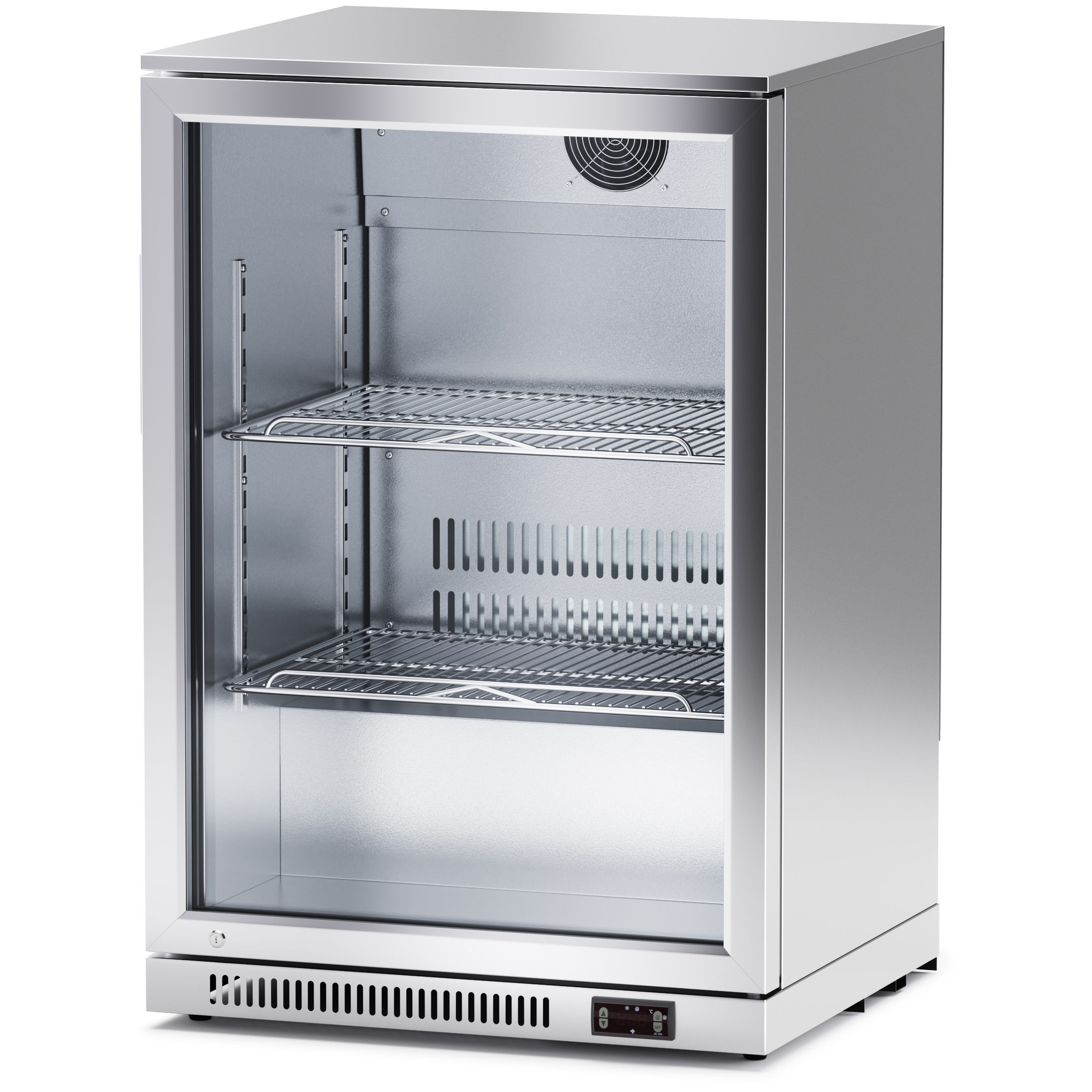 Kõrgekvaliteediline kaubanduslik tagumine baari külmik, millel on kõrgekvaliteediline kompressor ja digitaalne termostaat. Väga ruumisäästlik allalettõige õllekülmik. See väike baarikülmik on mõeldud professionaalseks toitlustuseks. Automaatne isesulguv uks Kahekihilised karastatud klaasid Ventilaatori abiga jahutus Eemaldatav digitaalne termostaat Sisemine LED-valgustus 2 reguleeritavat riiulit Välimine materjal: Roostevaba teras Sisemine materjal: Valgeks värvitud teras Dokumendid Klõpsa siin, et allalaadida kasutusjuhend Klõpsa siin, et allalaadida energiamärgis Palun vaata “Spetsifikatsioonide” all üksikasjalikku teavet.