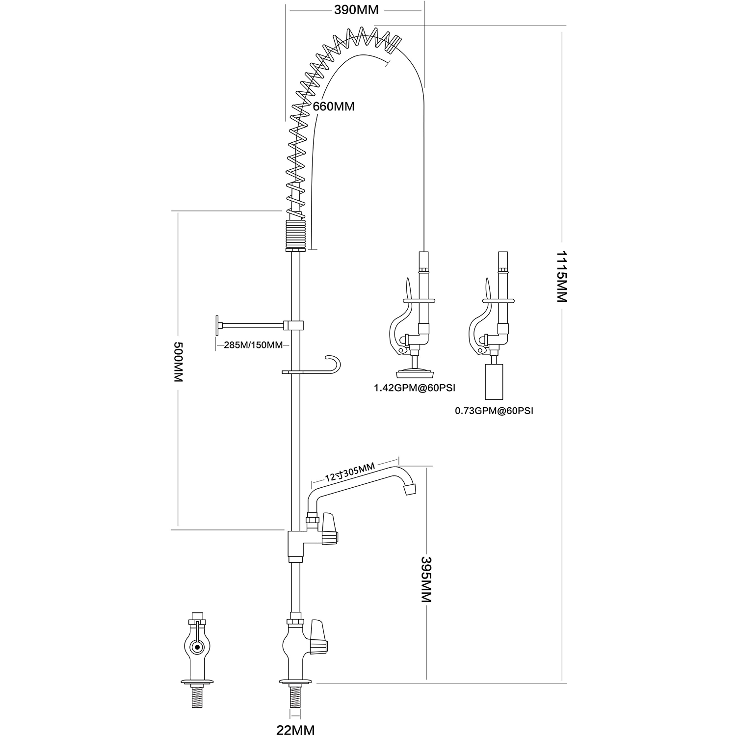 Professionaalne ja äärmiselt vastupidav eelloputuse pihusti, mis sobib ideaalselt toitlustusasutustele, kommertsköökidele, restoranidele ja hotellidele. Vedrumehhanismiga kael ning keraamiline pöördkassett lekete vältimiseks muudavad mõlemad eelloputuse ühikud vastupidavaks ja sagedaseks kasutamiseks sobivaks. Dekimontaaž Ühe sisselaskeavaga (kuum või külm vesi) Tugev roostevaba terasest konstruktsioon Monoblokk – ühe veesöötmega
