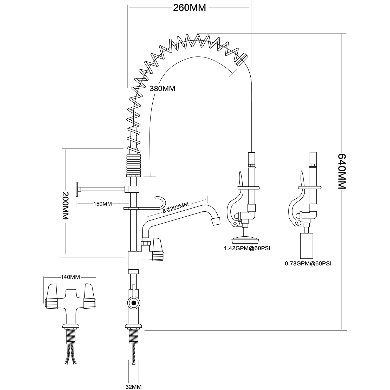 Professionaalne ja äärmiselt vastupidav eelpesupihusti, mis on ideaalne kasutamiseks toitlustusteenustes, kaubanduslikes köökides, restoranides ja hotellides. Vedrumehhanismiga gooseneck ja keraamilise padruniga väljalülituslekkekaitsega kujundus muudavad mõlemad eelpesuüksused vastupidavaks ja sagedaseks kasutamiseks sobilikuks. Platvormkinnitusega tüüp Kahe sisselaskega (kuum ja külm vesi) Tugev roostevaba terase konstruktsioon