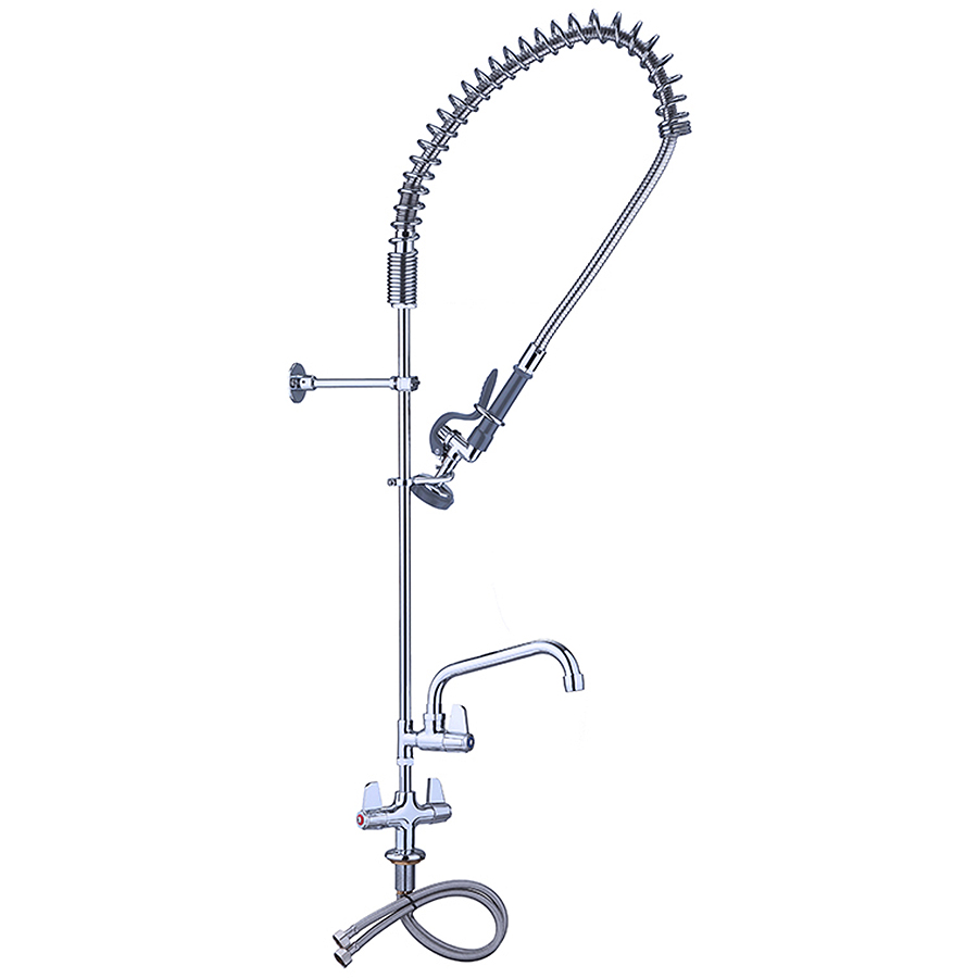 Professionaalne ja äärmiselt vastupidav eelpesupihusti, mis sobib ideaalselt toitlustusteenuste, äriköökide, restoranide ja hotellide jaoks. Vedrutoimelise “hane-kaelaga” ja lekkekindla keraamilise kassetiga, mõlemad eelpesu-seadmed on tugevad ja vastupidavad sagedaseks kasutamiseks. Lauaplaadile paigaldatav tüüp. Kahekordne sisselaskeava (kuum ja külm vesi). Tugev roostevabast terasest konstruktsioon.