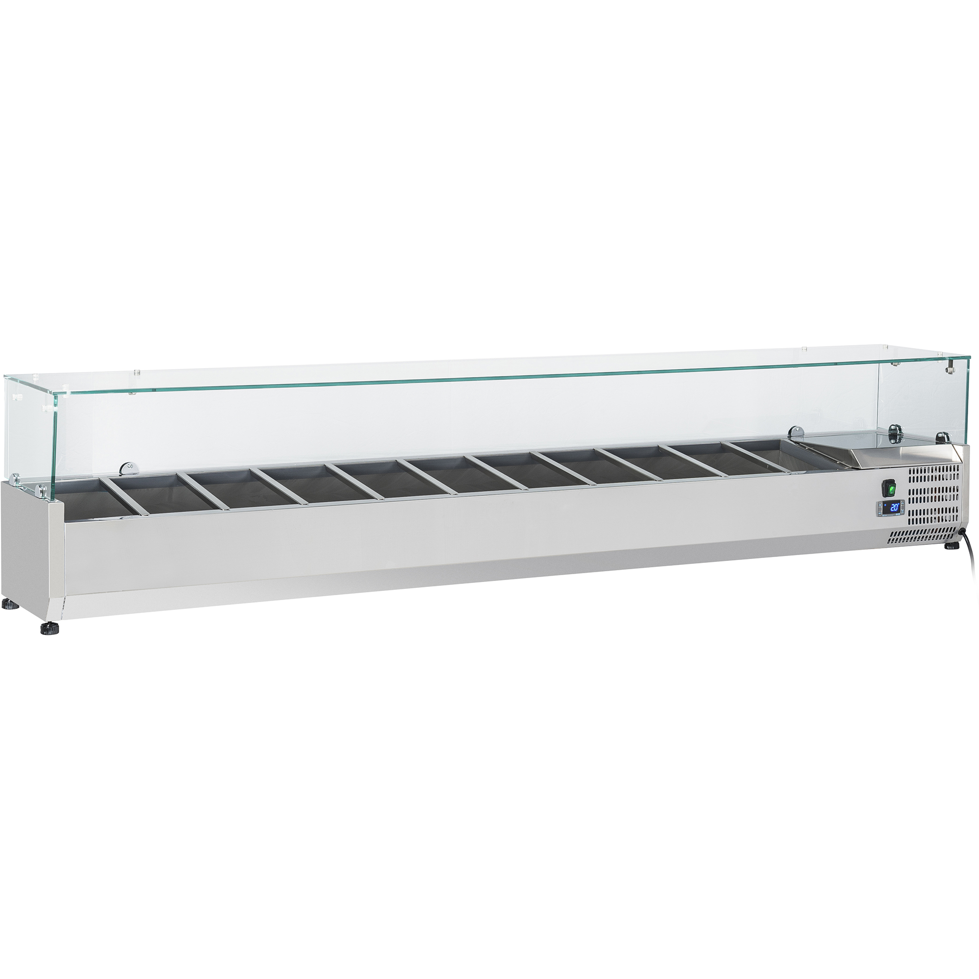 Pange tähele, et GN pannid ja kaaned ei kuulu seadme müügi hulka. Suurepärane, et hoida kõik koostisosad, hakitud köögiviljad, salatid ja palju muud jahutatuna ning käepärast roogade kaunistamiseks, võileibade, pitsa jne valmistamiseks.