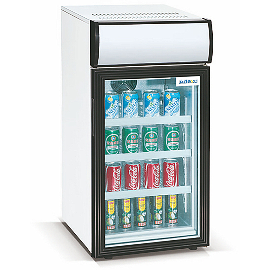 Joogikülmik Mini 50 liitrit Staatiline jahutus Klaasuksega Must/Valge Valgustusega varikatus | Adexa LG50