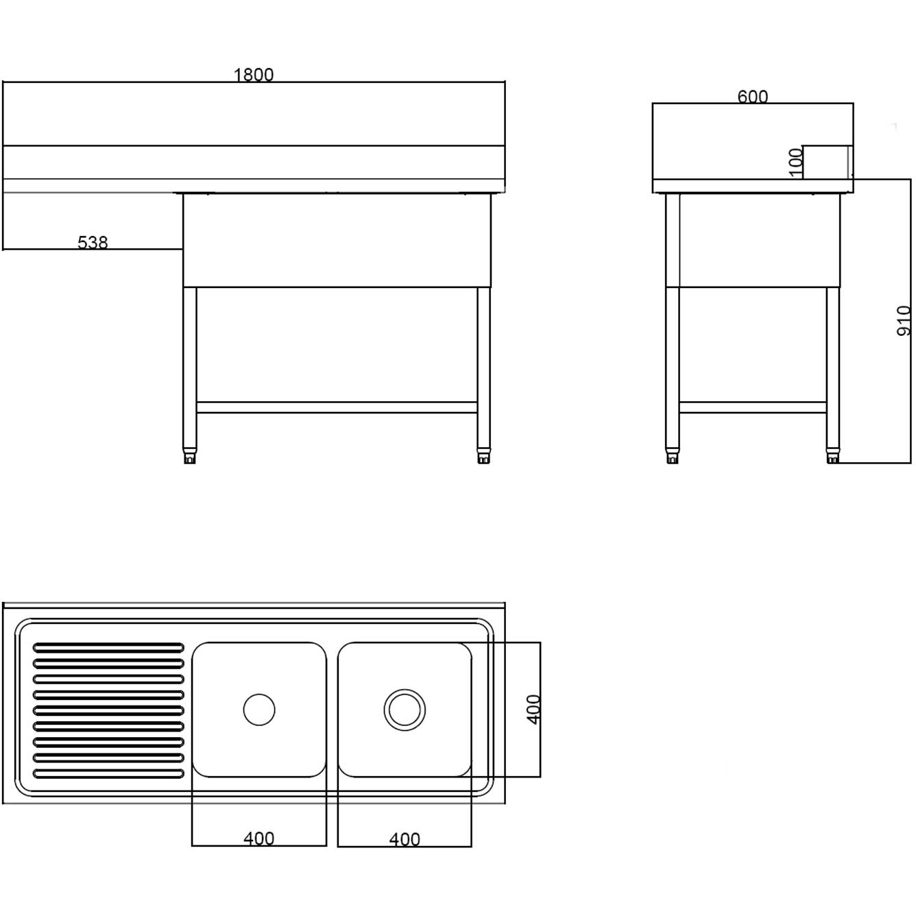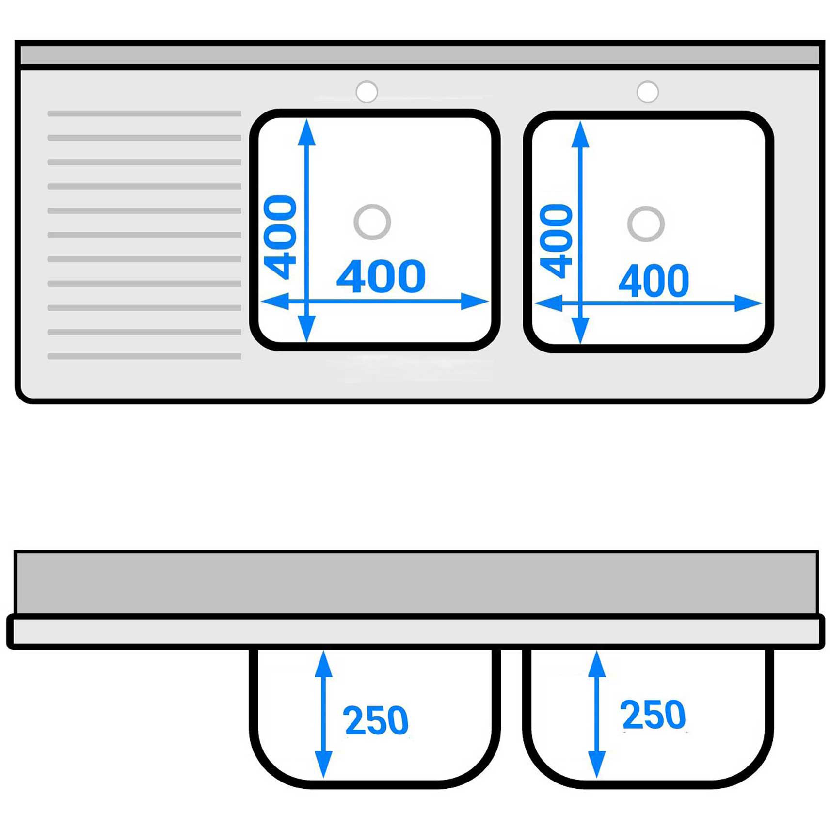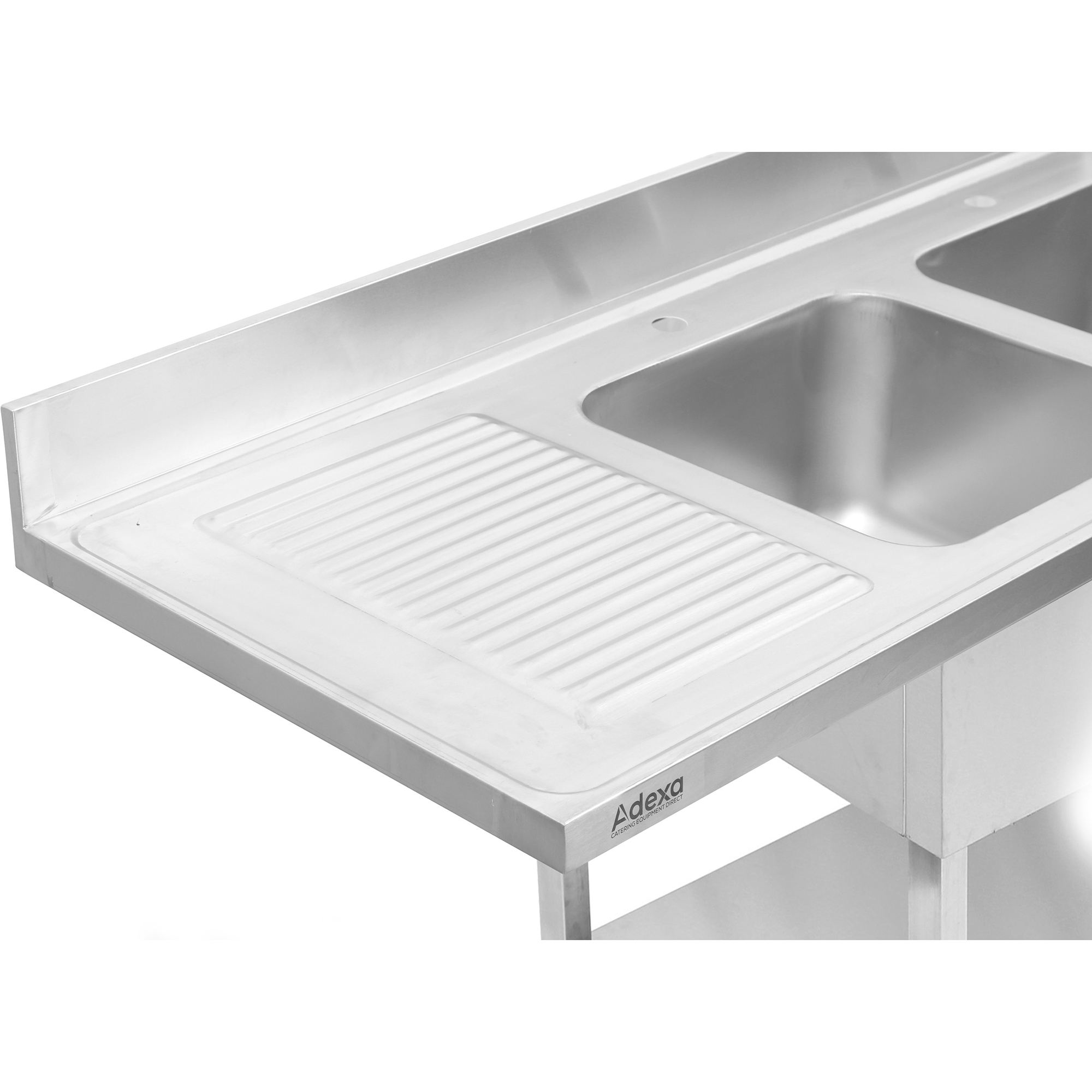 Kahe valamuga paremal nõudekuivatuse alusega ja Pritsmekaitsega 1800x600x910mm | Adexa DSB1860R
