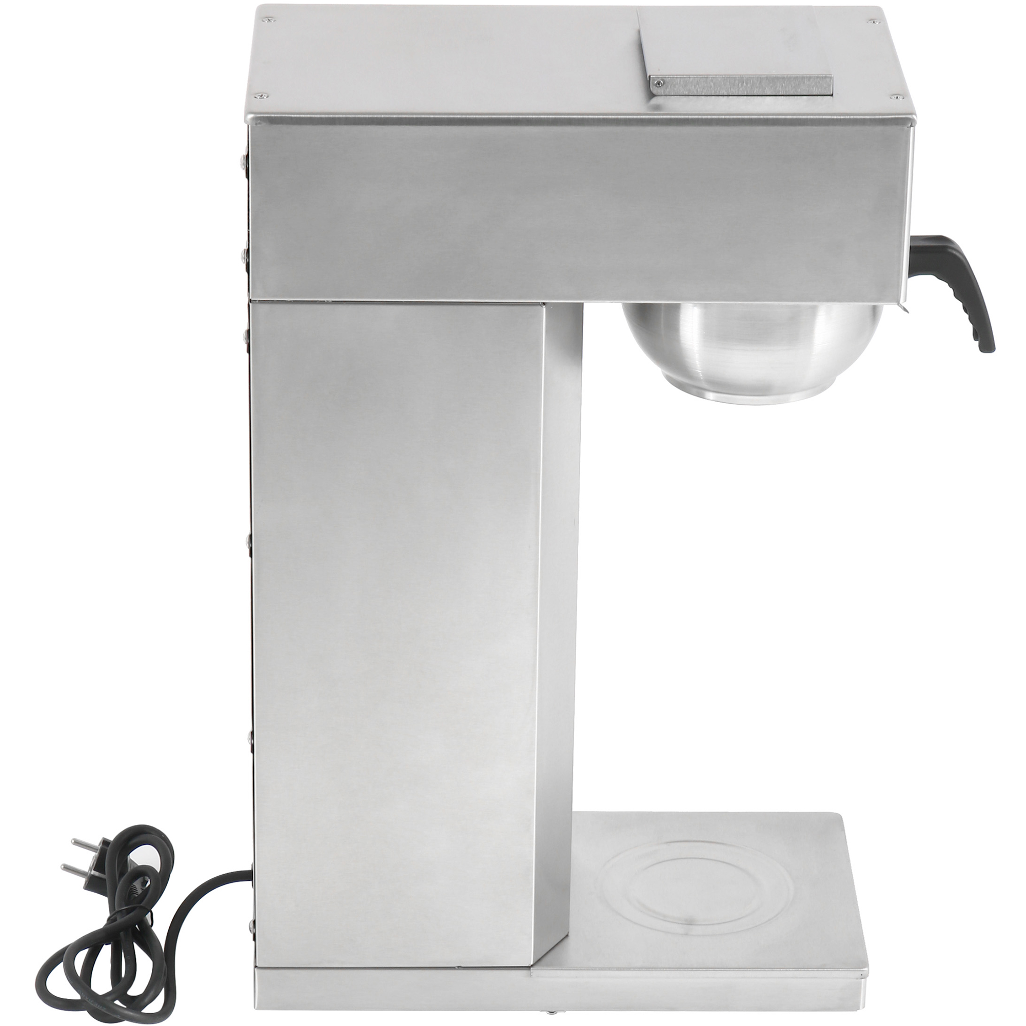 Valmistage oma klientidele või külalistele suurepärase maitsega kohvi professionaalse filtrikohvimasinaga. See toitlustamiseks mõeldud käsitsi täidetav masin on loodud avalikesse kohtadesse, kus inimesed vajavad suurepärase kohvi valmistamist lihtsalt, mugavalt ja kiiresti, nagu kontorid, koosolekuruumid, klubid, baarid ja restoranid. Kaasaegse voolujoonelise disainiga toob see kaubanduslikele kohvimasinatele täiesti uue mugavuse ja luksuse tunde. Kuni 15 liitrit tunnis Mahutavus (termoskann): 1,8 liitrit Valmimisaeg: 6 kuni 7 minutit Võimsus: 1,9 kW Toiteallikas: 230 / 1 faas Standardne Ühendkuningriigi pistik paigaldatud Masin ja filtrikandja valmistatud roostevabast terasest Sisaldab 1 roostevabast terasest termoskannu “Pump stiilis” keedusüsteem, iga kannu jaoks ainult värske vesi Kuumutab keeduvett ainult vajadusel, kõige energiatõhusam. Kohv valmistatakse optimaalsel temperatuuril Kohv hoitakse alati optimaalsel temperatuuril Kolmekordne turvakaitse Palun vaadake üksikasjalikku teavet jaotises “Spetsifikatsioon”.