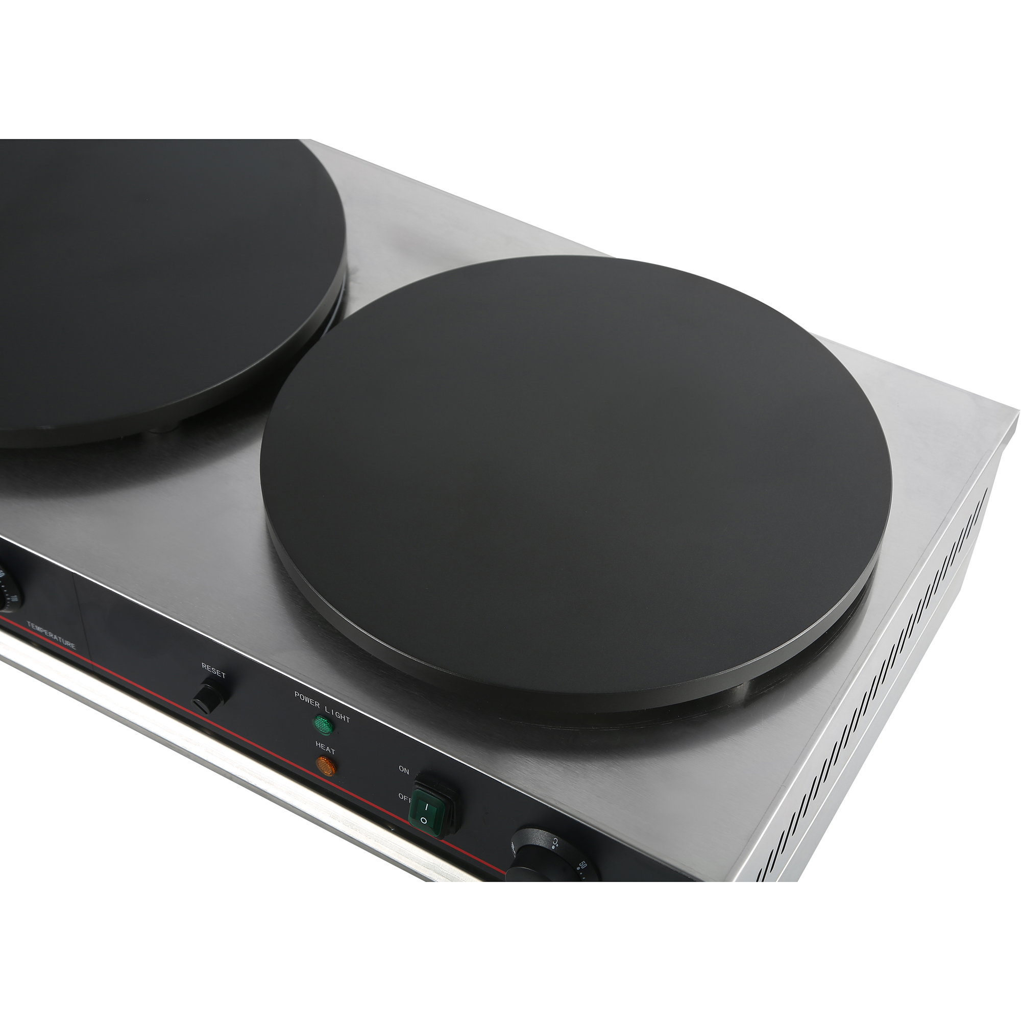 Kõrge kvaliteediga professionaalne krepipann. Valmista maitsvaid kreppe selle suurepärase hinna ja kvaliteedi suhtega masinaga. Sisaldab metallist T-kujulist levitajat. Vastupidav roostevabast terasest konstruktsioon. Soojenduse ja toite indikaatortuled. Mittekleepuv malmplaat. Libisemiskindlad jalad lisastabiilsuse tagamiseks. Üksikasjaliku teabe saamiseks vaadake jaotist ‘Spetsifikatsioon’.