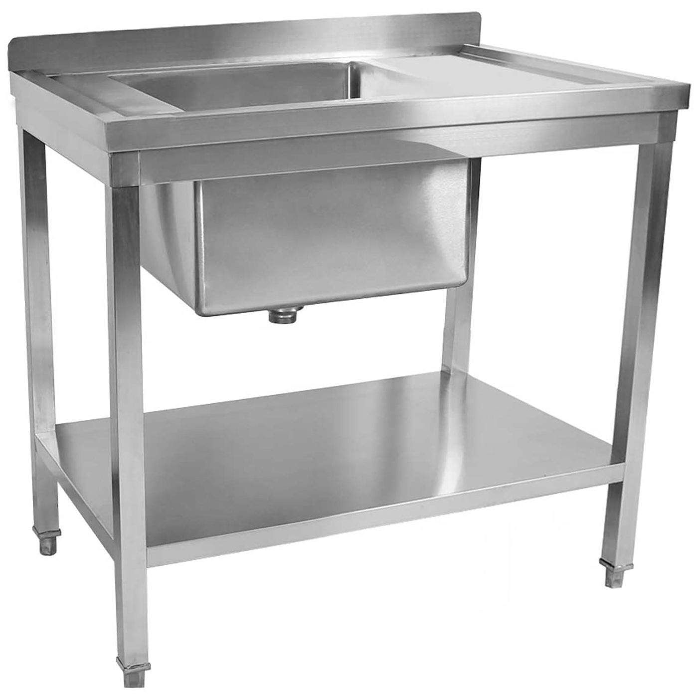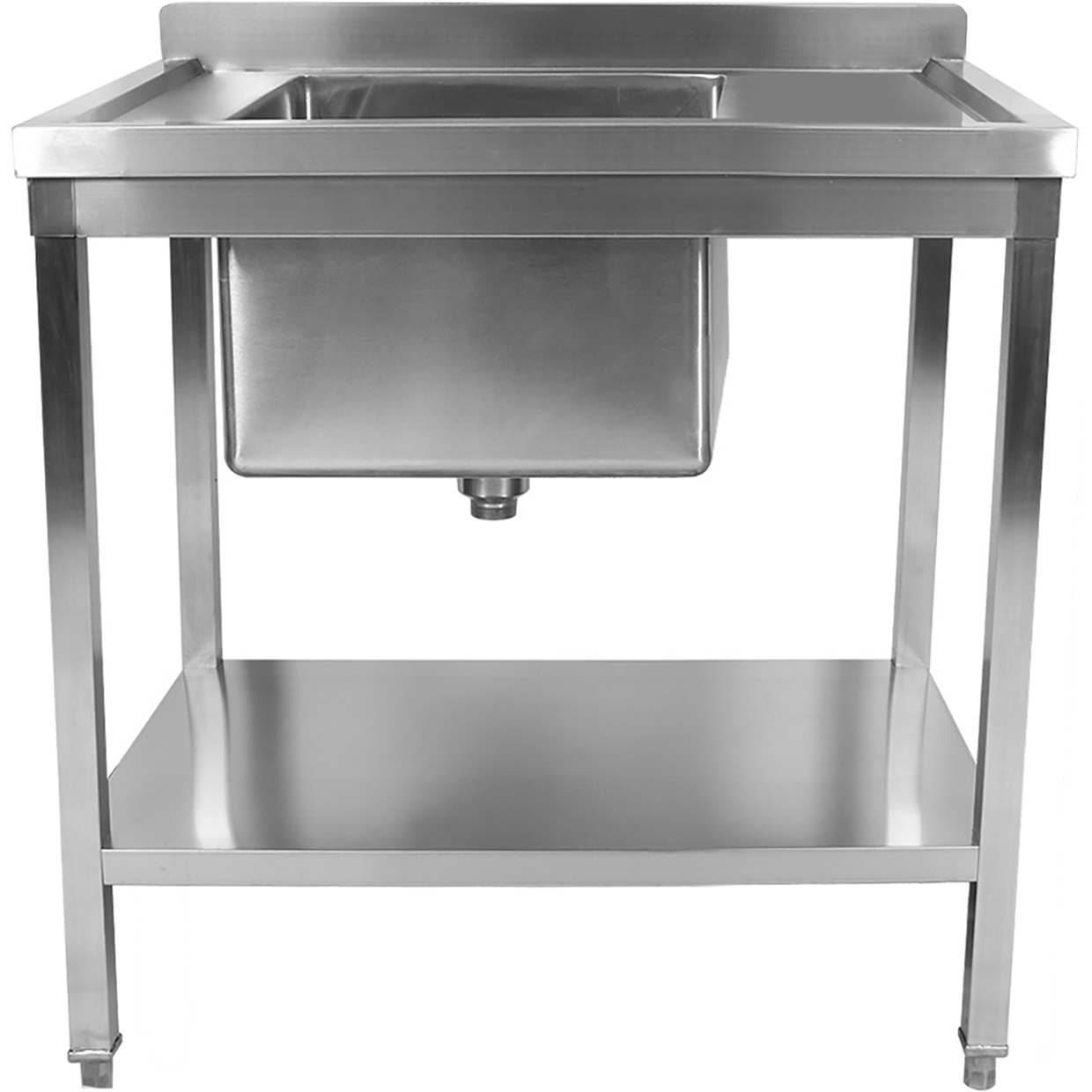 Kaubanduslik kraanikauss roostevabast terasest 800x600x900mm 1 kauss vasakul pritsmekaitse alumine riiul | Adexa STD08060L