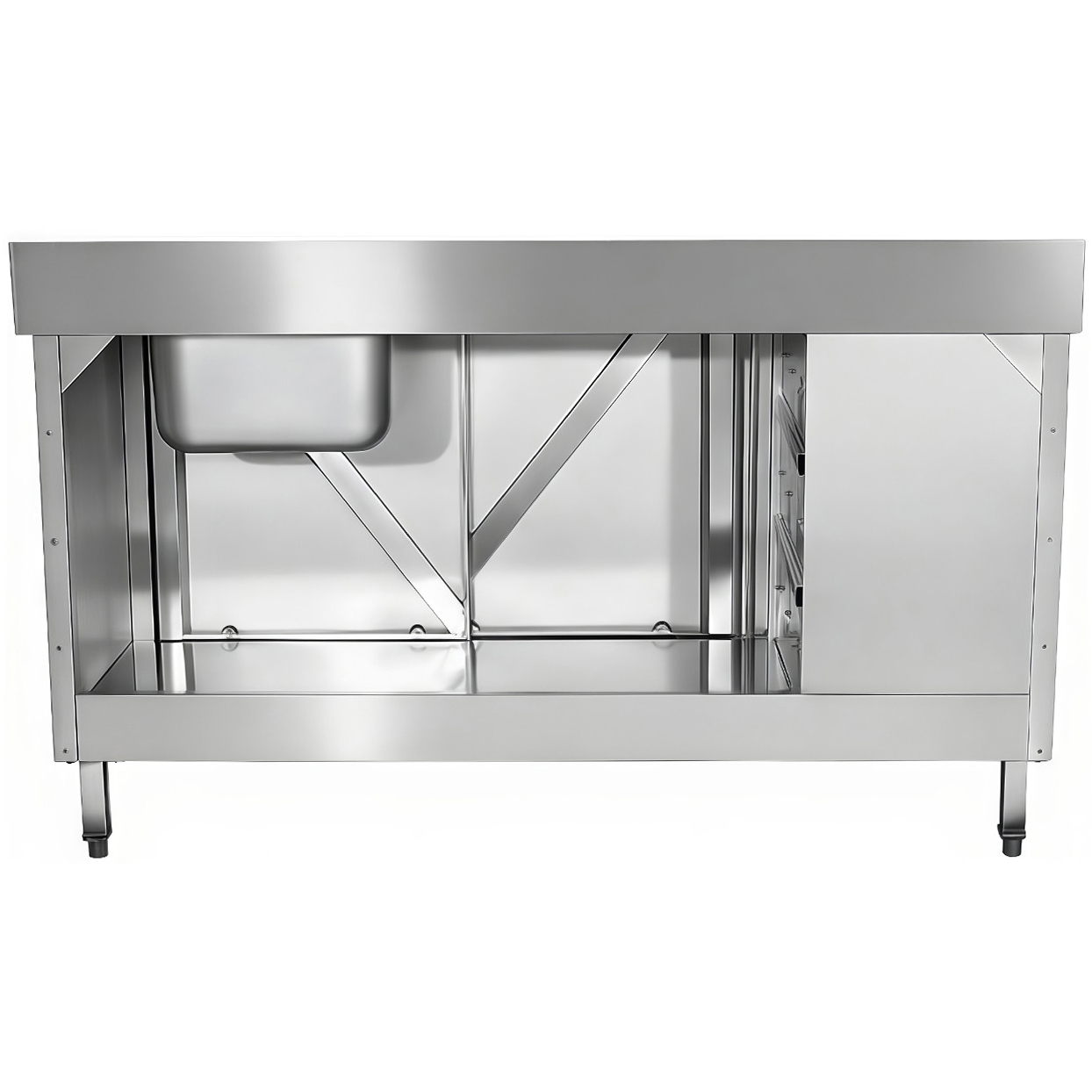 Kaubanduslik roostevabast terasest valamu ja hoiustamisseade: Üks kauss, 2 liugust ja 3 sahtlit. Maksimeerige efektiivsus ja organiseeritus oma kaubanduslikus köögis selle kõrgekvaliteedilise roostevabast terasest valamu ja hoiustamiskombinatsiooniga. Kavandatud optimaalse ruumikasutuse ja hügieeni tagamiseks, see seade ühendab praktilise pesemisjaama avara ja ligipääsetava hoiustamisega. Peamised omadused: Üks kaubanduslik valamu kauss: Suure mahutavusega kauss pakub spetsiaalset ala suurte pottide, pannide ja köögiriistade tõhusaks pesemiseks, loputamiseks ja leotamiseks. Hügieeniline roostevabast terasest konstruktsioon: Täielikult valmistatud vastupidavast, toitlustusklassi roostevabast terasest. See mittepoorne materjal on korrosioonikindel, uskumatult lihtne puhastada ja vastab kõigi professionaalsete toiduainete teeninduskeskkondade rangetele hügieenistandarditele. Ruumi säästvad liuguksed: Suur valamu alune kapiala on suletud kahe sujuvalt libiseva liuguksega. See disain ei vaja avamiseks ruumi, muutes selle ideaalseks kitsastes, suure liiklusega koridorides ja maksimeerides juurdepääsu laohaldusele (nt kemikaalid, prügikastid või puhastusvahendid). Integreeritud kolmesahtline seade: Sisaldab kolme tugevat, täispikendusega sahtlit peamise kapi kõrval. Need pakuvad sektsioneeritud, tolmuvaba hoiustamist väiksematele, olulistele esemetele nagu söögiriistad, pakendimaterjalid, kokkade tööriistad või ettevalmistustarvikud, hoides neid käeulatuses. Pritsmekaitse: Integreeritud tagumine tõus/pritsmekaitse kaitseb seinu ja ümbritsevaid pindu veekahjustuste ja toiduplekkide eest, tagades puhtama ja hügieenilisema tööruumi. Tugev tööpind: Tugevdatud tööpind pakub erakordset tugevust ja stabiilsust, teenides nii ettevalmistusalana kui ka pühendatud äravoolupinnana valamu kõrval. Reguleeritav stabiilsus: Kõrguse reguleeritavad jalad võimaldavad teil seadet ebaühtlastel põrandatel täiuslikult tasandada, tagades maksimaalse stabiilsuse kasutamise ajal. Täiuslik kõik-ühes lahendus pesemiseks ja organiseeritud hoiustamiseks hõivatud restoranides, kohvikutes ja toitlustusasutustes. Palun vaadake ‘Spetsifikatsioonide’ alt üksikasjalikku teavet.