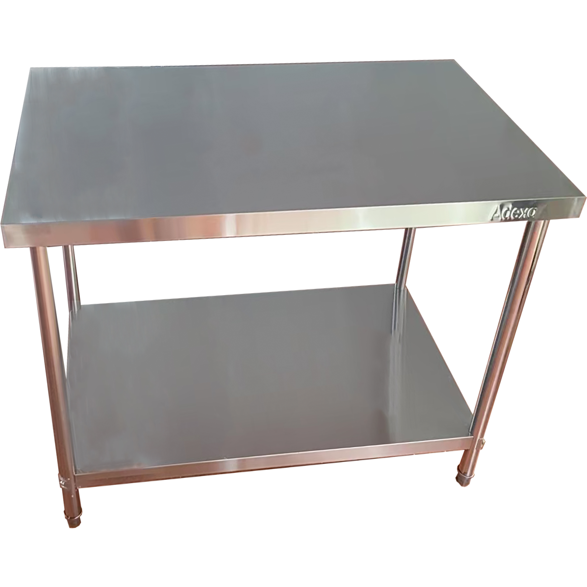 Kaubanduslik töölaud alumine riiul roostevabast terasest ümarad jalad 900x800x900mm | Adexa QNH1128