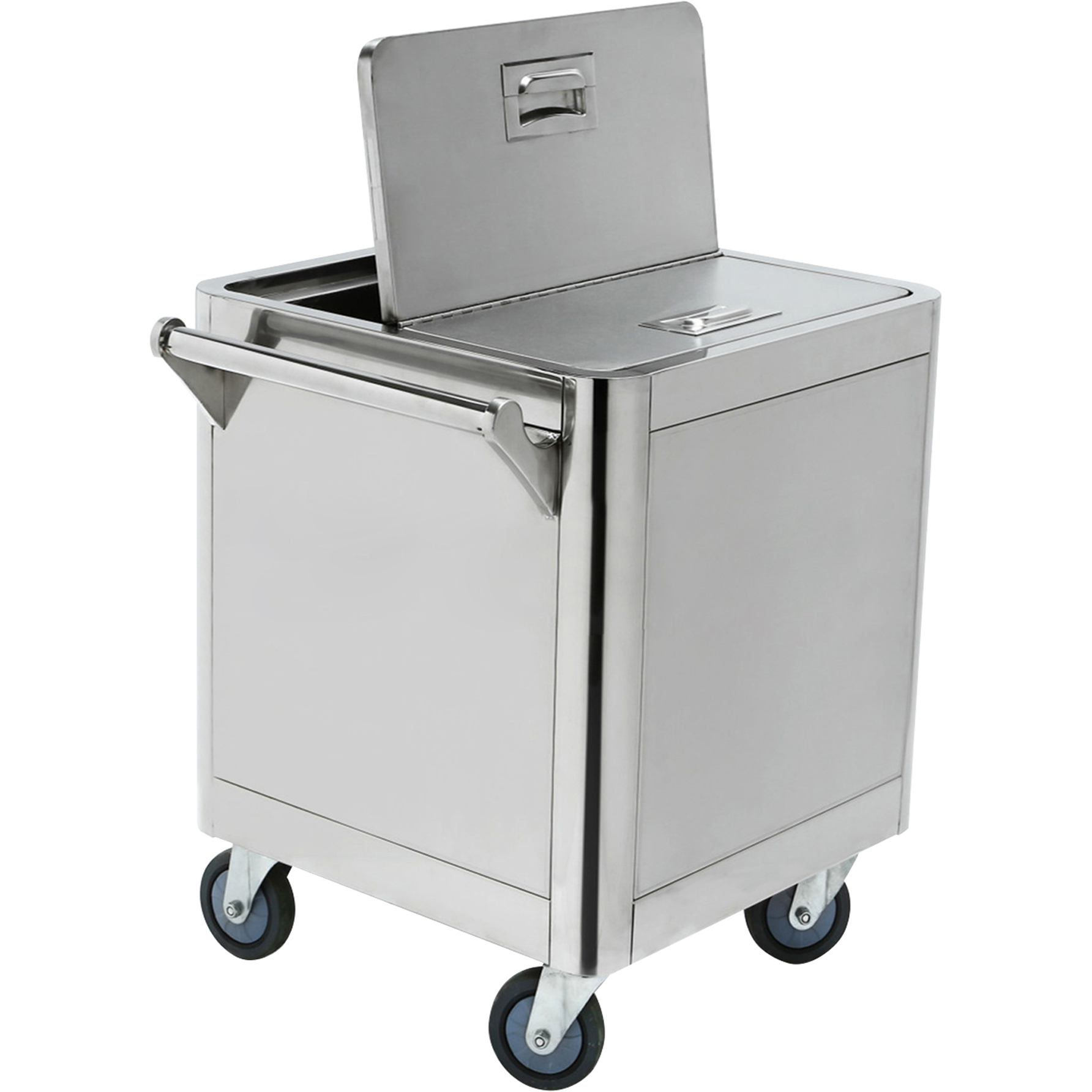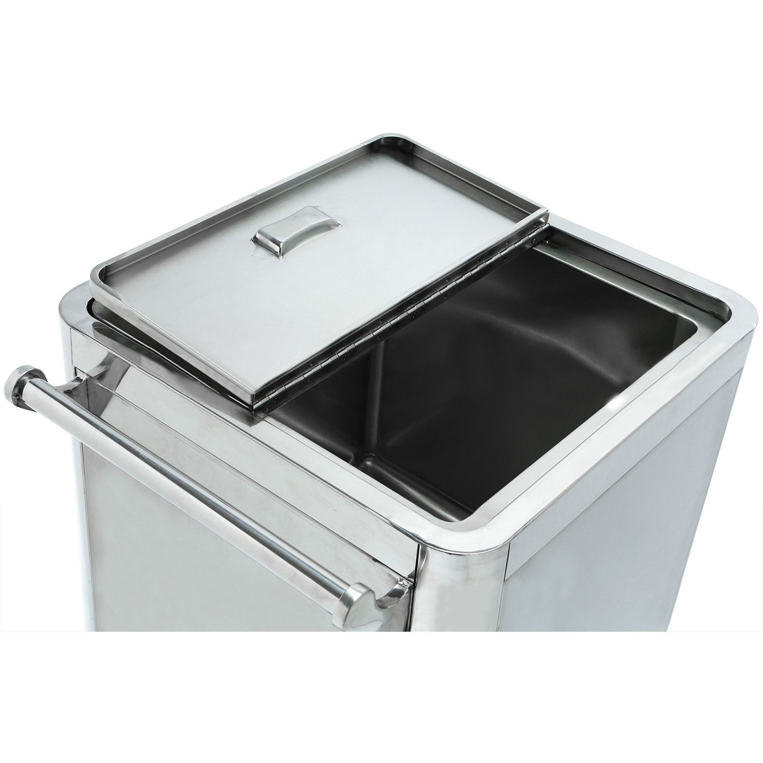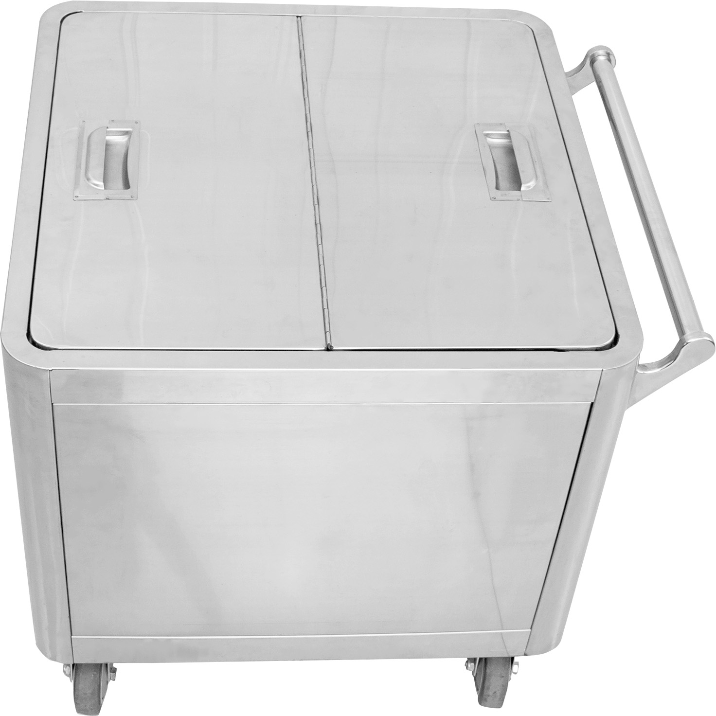 Professionaalne roostevabast terasest koostisosade konteiner neljal rattal. Selle käruriiuli kaaned on jagatud kaanedega, mis avanevad mõlemast otsast. Väga mitmekülgne konteinerite käruriiul, mida saab restoranis, hotellis või baaris hõlpsasti kasutada mitmesugustel muudel eesmärkidel.Materjal: roostevaba teras