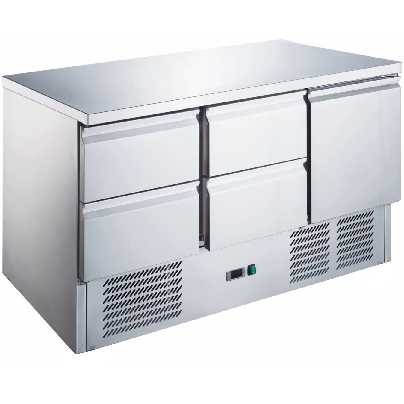 Roostevabast terasest välis- ja sisekonstruktsiooniga jahutatud kaubanduslik ettevalmistuslaud 1 ukse ja 4 sahtliga. Sahtlid sobivad GN1/1 suurusesse mahutitesse, mida ei tarnita. Ideaalne lisand igasse restorani või sarnasesse toitlustuse ettevalmistuskööki. CFC-vaba külmaaine ja vahtAISI 304 roostevabast terasest raamkonstruktsioonElektrooniline termostaat ja digitaalne LED temperatuuri näidik täpseks juhtimiseks ja hõlpsaks lugemiseksAutomaatne sulatus ja kondensatsioonivee automaatne aurustamineMagnettihend, mida saab ilma tööriistadeta asendadaAllosas on ümarad servad lihtsaks puhastamiseksKavandatud mahutama GN1/1 panne, konteinereid ja aluseidMahutavus: 257 liitritToiteallikas: 230V / 1N / 50HzTemperatuur: +2C kuni +8CJahutus: StaatilineRattad kaasasSobitatud tavalise Ühendkuningriigi pistikugaPalun vaata jaotist ‘Spetsifikatsioon’ üksikasjaliku teabe saamiseks.
