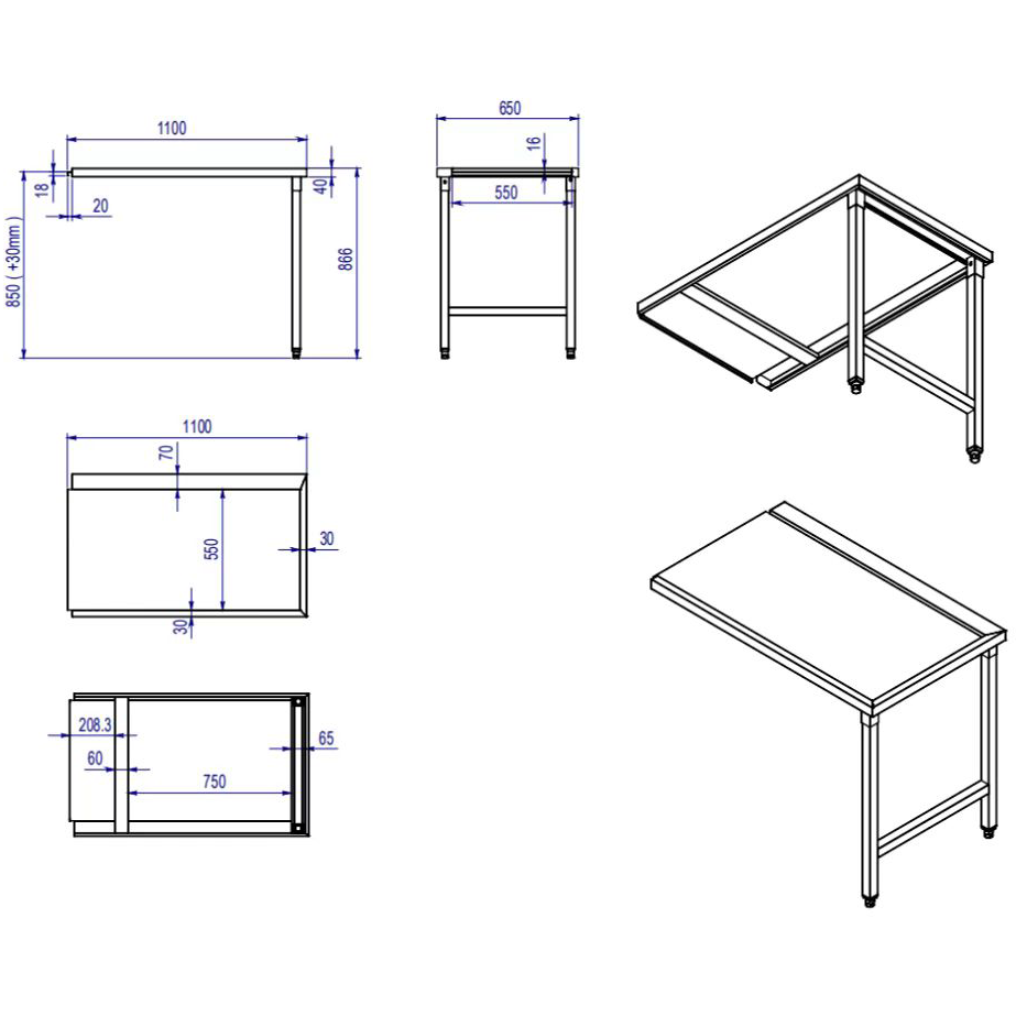 Algne hind oli: 196,30 €.109,93 €Current price is: 109,93 €.Mahalaadimislaud Vasak külg 1100x650x850mm Ilma alumise riiulita Ilma pritsmekaitsmeta Roostevaba teras | Adexa SWT11065R