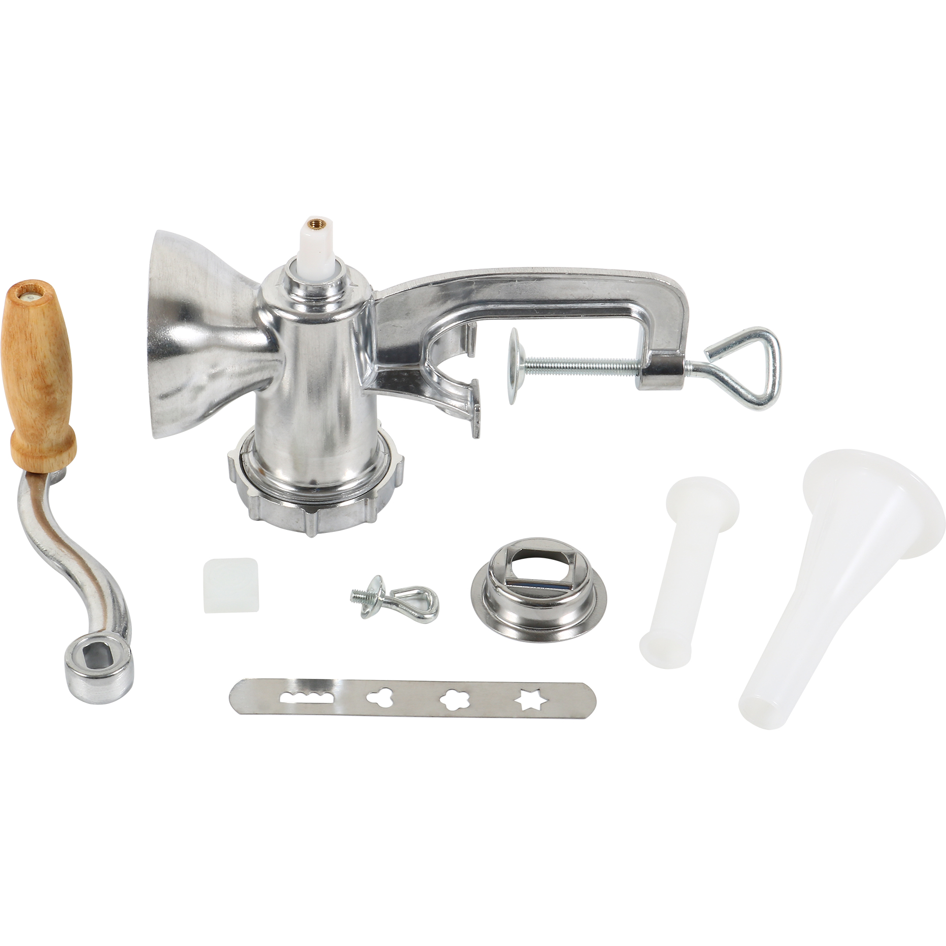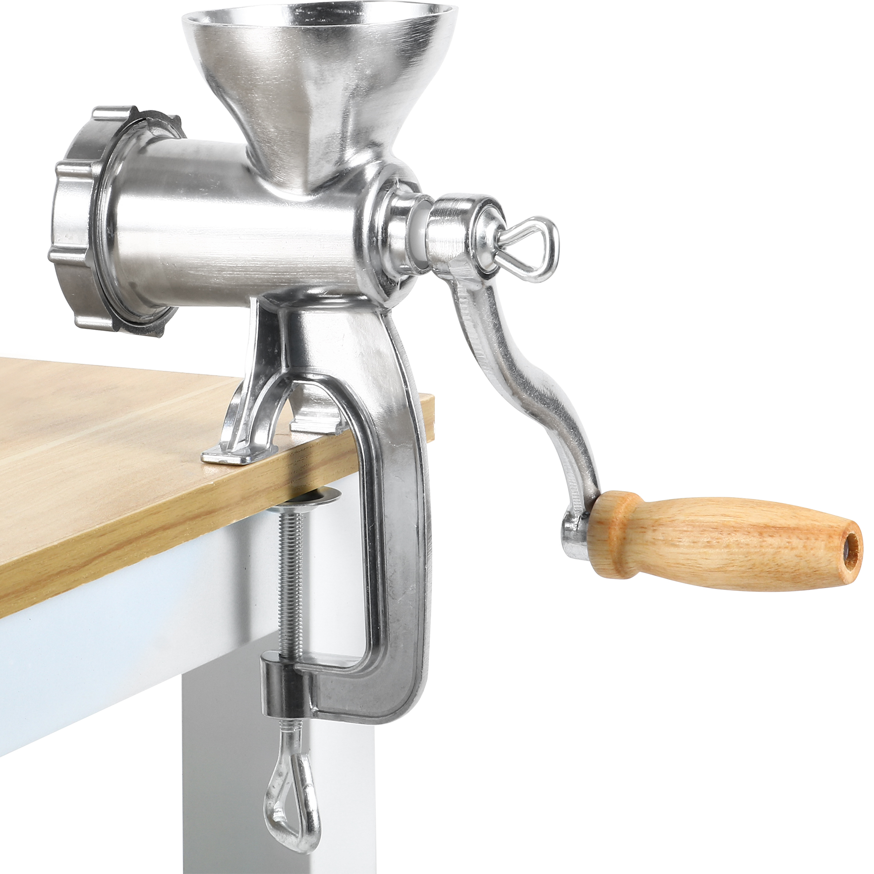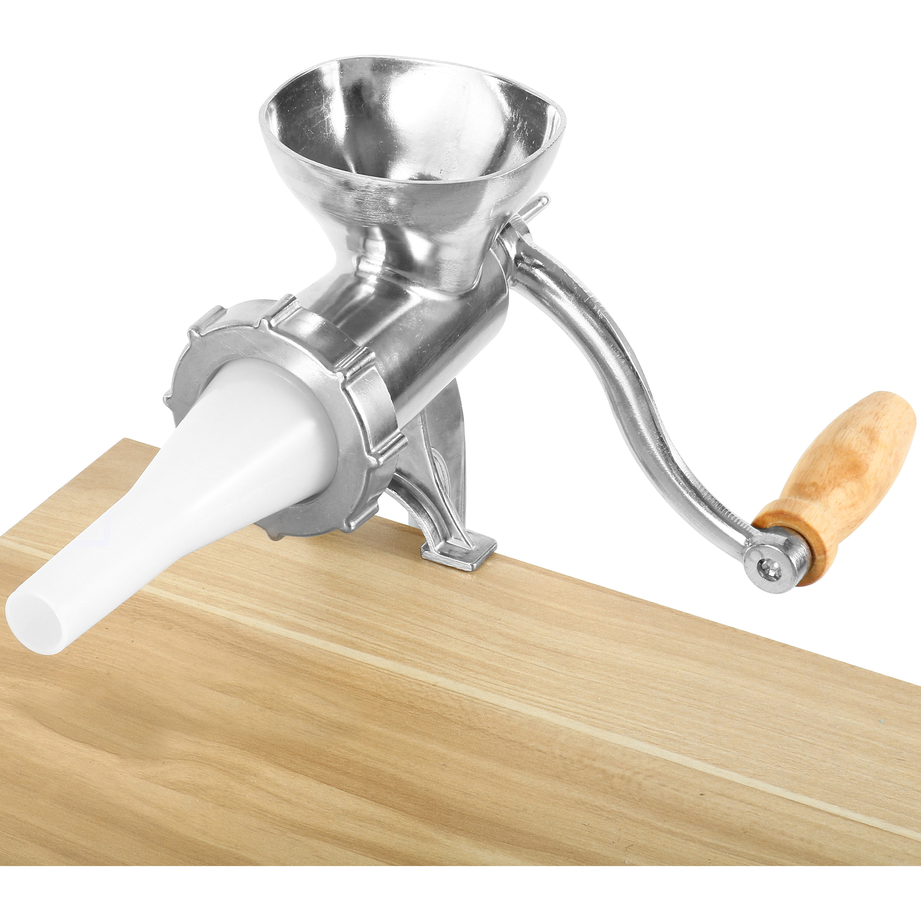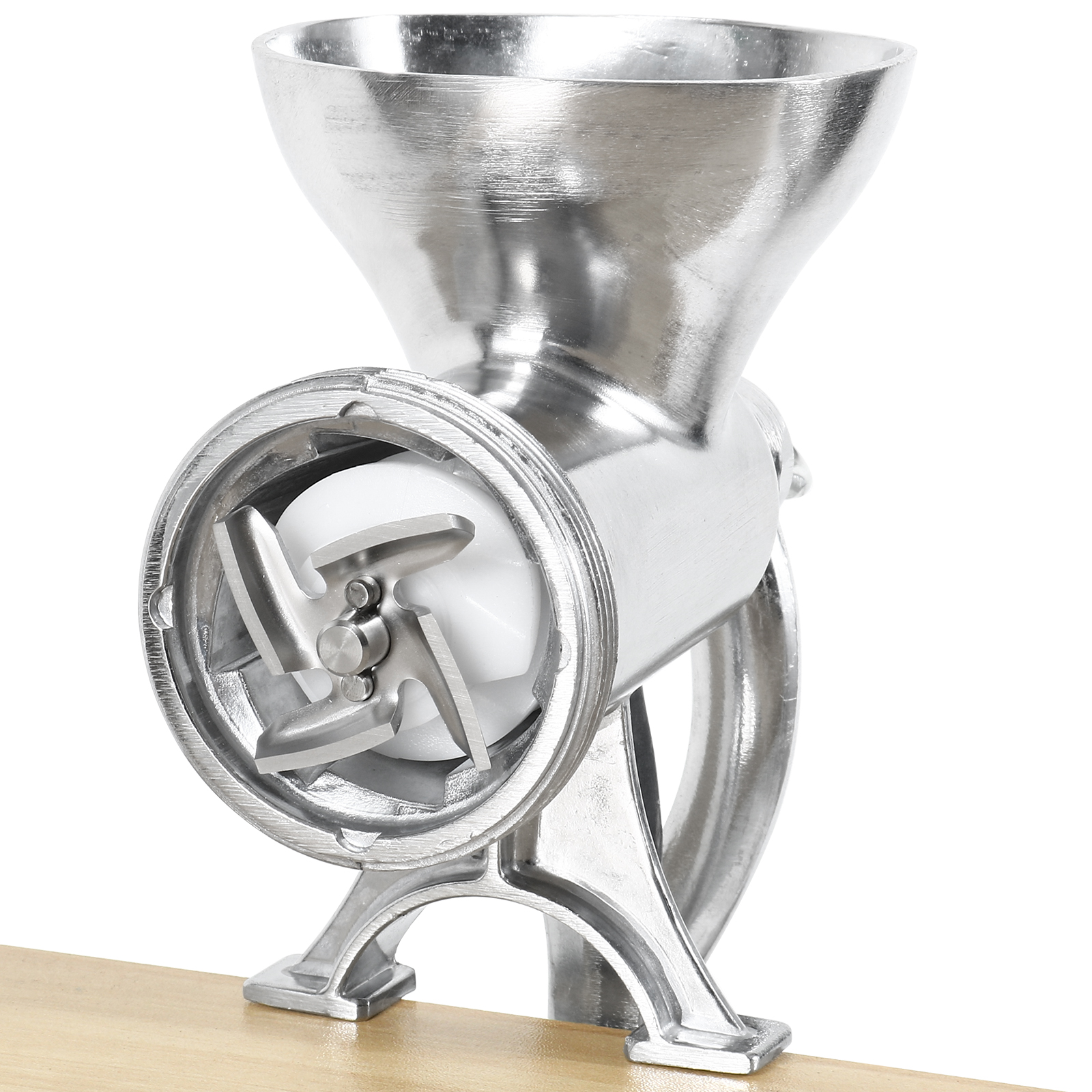 Valmista vorste, hamburgereid ja palju muud selle käsitsi lihaveskiga! Lihaveski on varustatud klambriga, et saaksite selle otse oma köögilauale kinnitada. See käsitsi lihaveski jahvatab 1-2 kg liha minutis. Komplekti kuulub jahvatusplaat, täites lehter koos ääriku ja täitega, mis sobib erinevateks liha jahvatamise ja täitmise rakendusteks. Selle seadme toidukindel tina kattekihi ja nailonist tigukruvi laager tagavad, et see lihaveski peab ajale vastu.