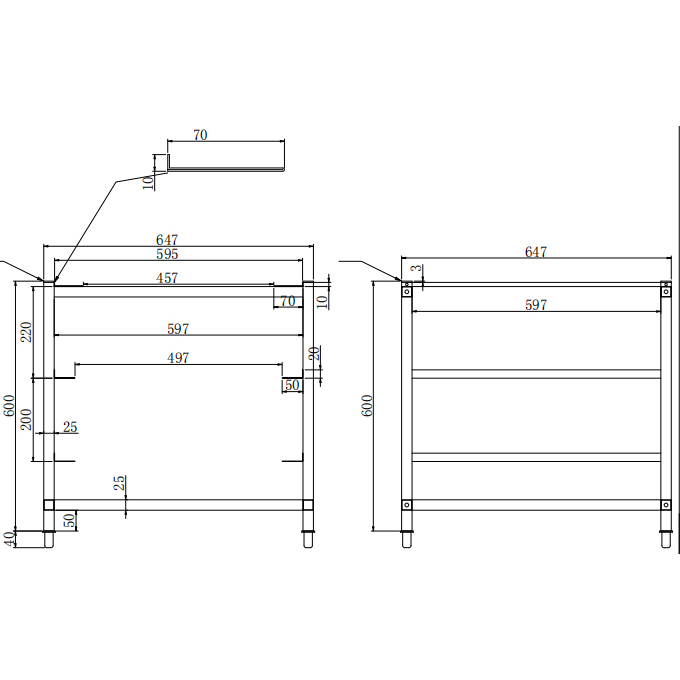 | Riiulid | 2 raamijuhikut 500x500mm korvide jaoks |