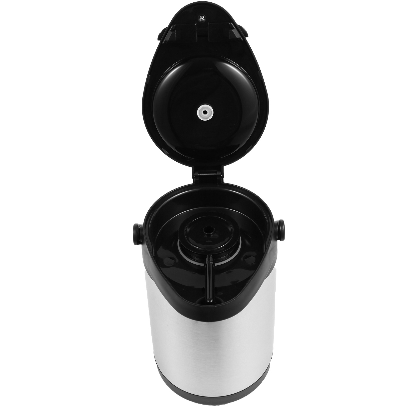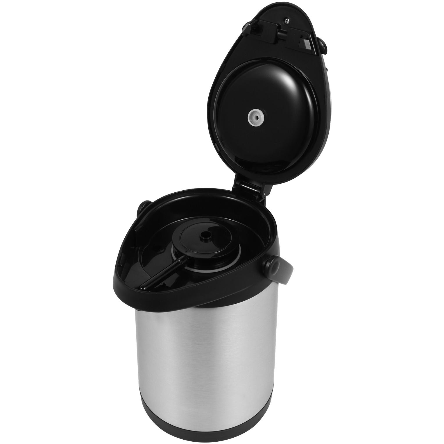 See professionaalne pumbatoimeline õhupott on mõeldud raskeks kommertskasutuseks. See õhupott on väga vastupidav ja seetõttu ebatõenäoline, et puruneb transpordi või kasutamise ajal, samas kui nupu mehhanism on mõeldud pidevaks kasutamiseks ja hõivatud üritusteks. Kahekordne roostevabast terasest vaakumkehaga PP-plastikust pea, käepide ja alus Push-pumba stiil