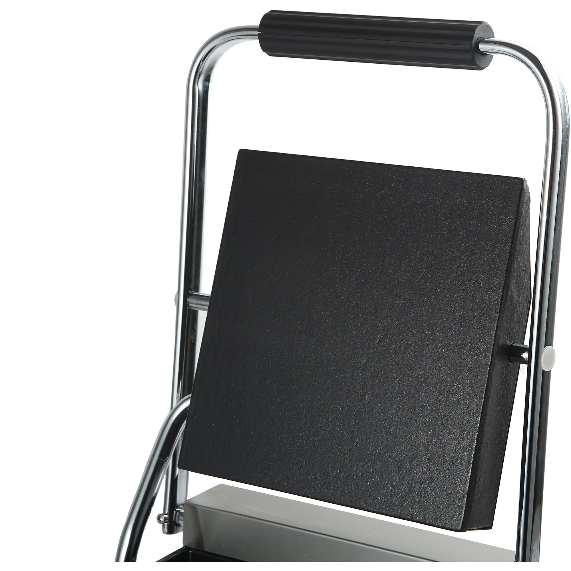 Grillige oma populaarsemaid võileibu täiuslikkuseni selle mitmik-kontakt-panini-võileivagrilliga! Sellel grillil on malmplaadid, mis küpsetavad võileivad ühtlaselt. Termostaatiline kontroll võimaldab kohandada temperatuuri, et küpsetada ideaalsel temperatuuril, samas kui roostevabast terasest välimine raam tagab pikaajalise vastupidavuse. Suurepärane paninide, võileibade, leibade ja isegi hamburgerite ja queasadillade grillimiseks, see mitmekülgne grill lisab teie asutusele mitmekesisust! Roostevabast terasest korpus Malmist küpsetuspind +50°C kuni +300°C