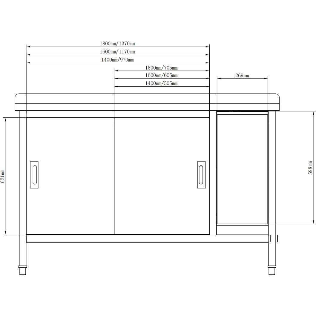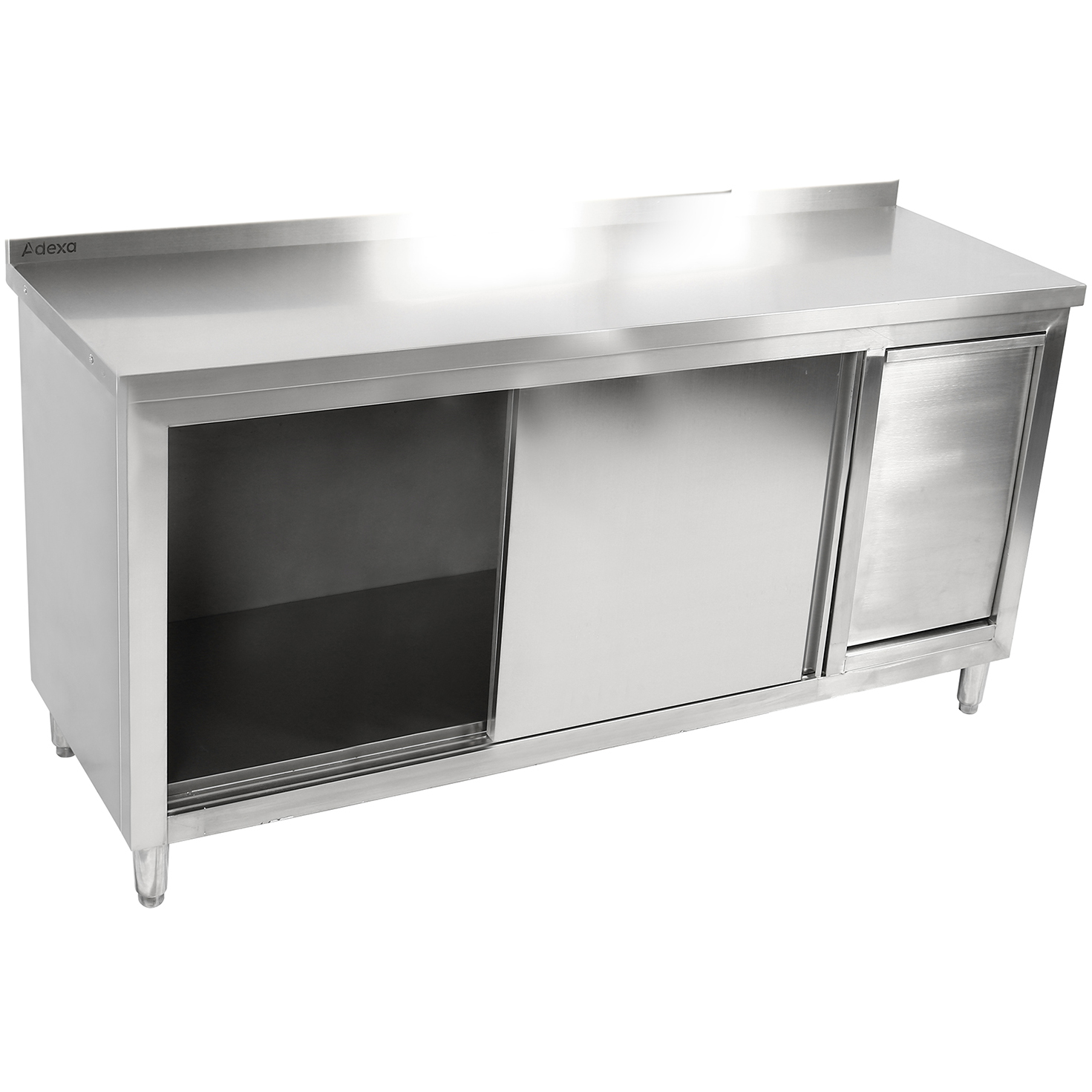 Algne hind oli: 244,24 €.173,41 €Current price is: 173,41 €.Tööpinnaga põrandakapp liugustega, roostevaba teras, 1600x600x850 mm, pritsmekaitse | Adexa VTC166SLB