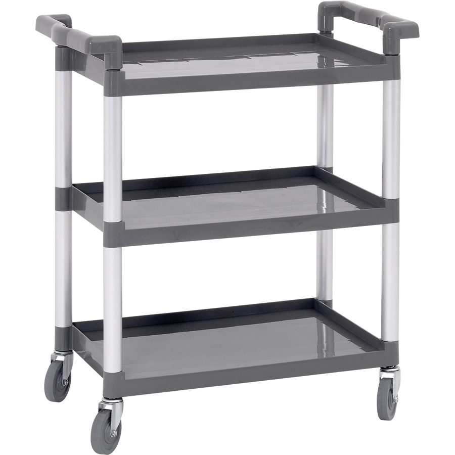 See musta värvi mitmeotstarbeline kaubanduslik utiliitkäru ühendab endas esindusliku välimuse ja vastupidava konstruktsiooni. Vastupidavad, satiinviimistlusega alumiiniumist tugipostid pakuvad erakordset tuge ja vähendavad pideva kasutuse põhjustatud kulumist. Neli pöörlevat ratast võimaldavad hõlpsasti manööverdada nurkade ümber. Kärul on polüpropüleenist käepidemed ja riiulid, mis on vastupidavad ja kerged. Praktiline igas restoranis, hotellis või muus toitlustusasutuses. Täpsema teabe saamiseks vaadake jaotist ‘Spetsifikatsioon’.