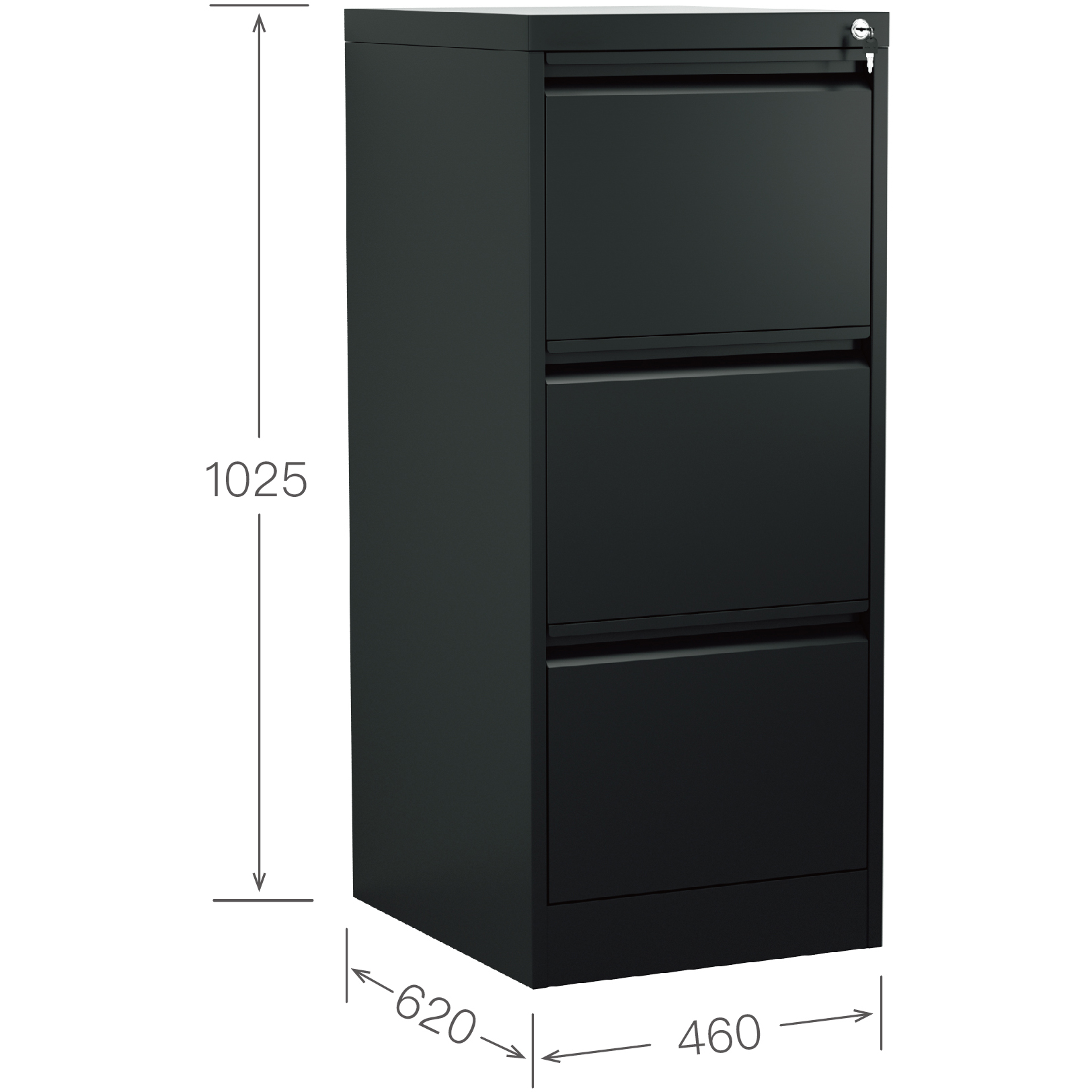 Professionaalne metallist kaustakapp, 3 sahtlit, 460x620x1025mm, must | Adexa SEDA3B