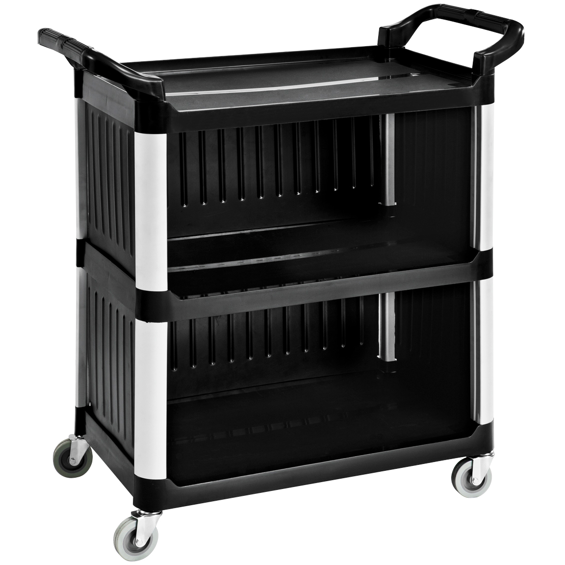 Sellel muljetavaldava mahutavusega kommertskäru on ideaalne taldrikute, klaaside, nõudekorvide ja teiste restorani köögitarvikute vedamiseks ühest ruumist teise erakordse lihtsusega. Sellel kapil on suurepärane mitmekülgsus, samal ajal kui 3 avarat riiulit pakuvad piisavalt ruumi esemete ladustamiseks. Vastupidava konstruktsiooni ja klassikalise musta värviga on see kärul hädavajalik igas toiduainete teenindus- ja toitlustusettevõttes. Samuti saab seda kergesti kasutada puhastuskäruna, millel on võimalik lisada kaks jäätmekasti. Üksikasjaliku teabe saamiseks vaadake jaotist “Spetsifikatsioon”.