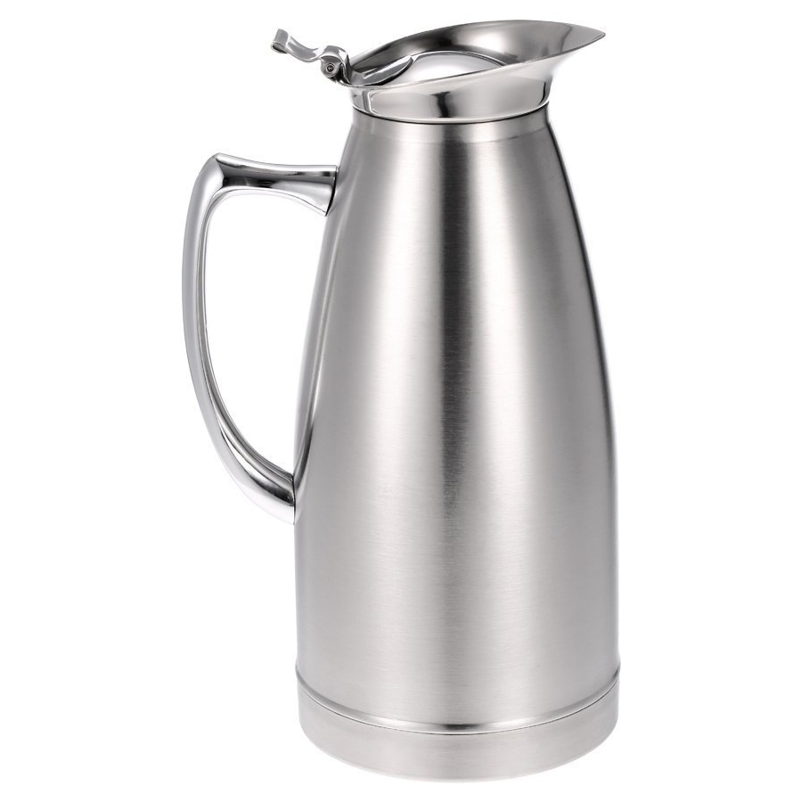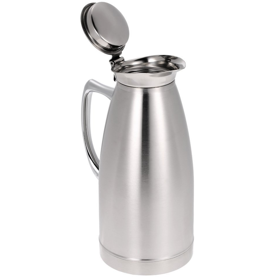See kaasaegse disainiga roostevabast terasest kohvikann on varustatud mugava valamise jaoks topeltkihilise käepidemega. Hingedel kaanel on käepide kontrollitud valamiseks, samas kui kompaktne tila tagab tilgavaba valamise ja lihtsa hoidmise. Sobib kommertsnõudepesuks ja on saadaval suuremates suurustes.