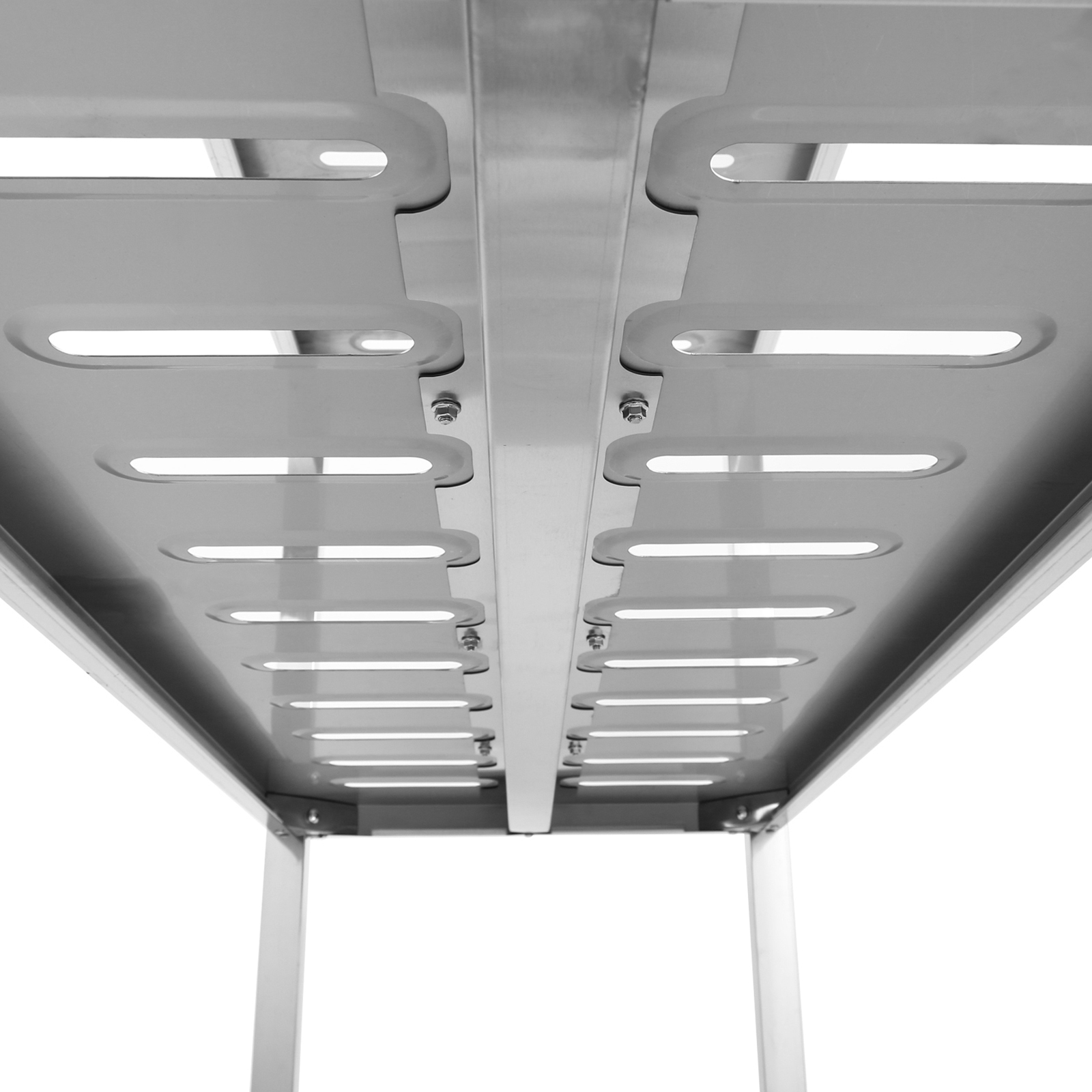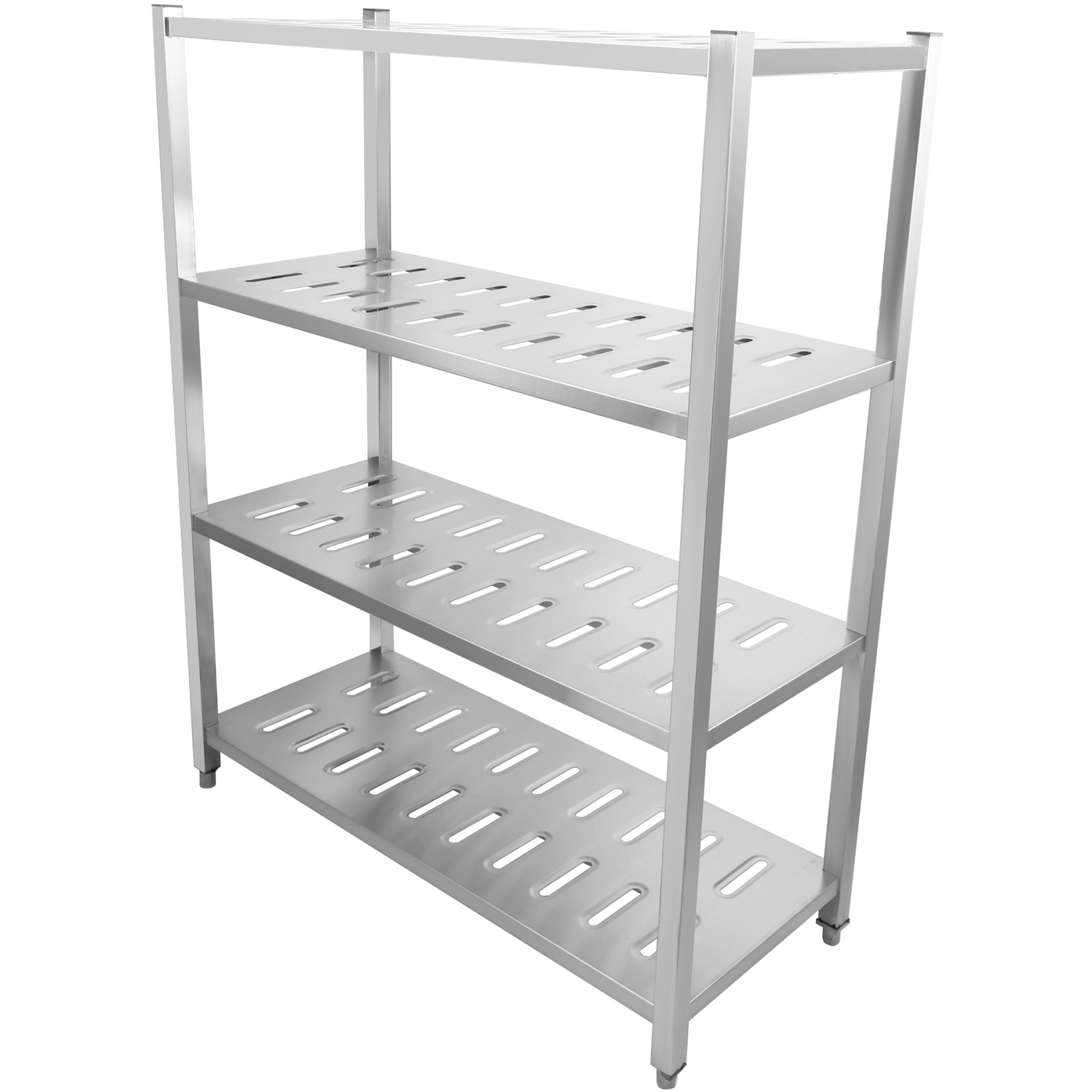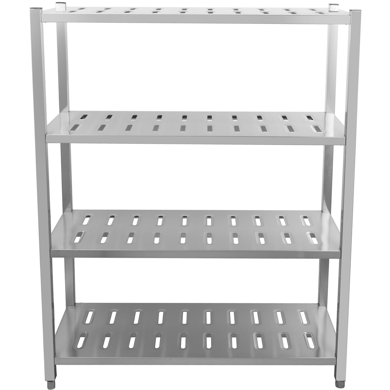 See tugev roostevabast terasest kaubanduslik riiulisüsteem on ideaalne ladude, restoraniköökide või mistahes tühja seina jaoks, kus oleks vaja lisaruumi asjade hoidmiseks. See tööstusliku kvaliteediga riiulisüsteem on valmistatud vastupidavast roostevabast terasest, mis tagab maksimaalse vastupidavuse. Kas omate restorani, ladu, haiglat või hotelli, see riiulisüsteem vastab kindlasti teie vajadustele. Iga tugevdatud riiul on testitud taluma kuni 200 kg ühtlaselt jaotatud kaaluga. Üksikasjaliku teabe saamiseks vaadake jaotist ‘Spetsifikatsioon’.