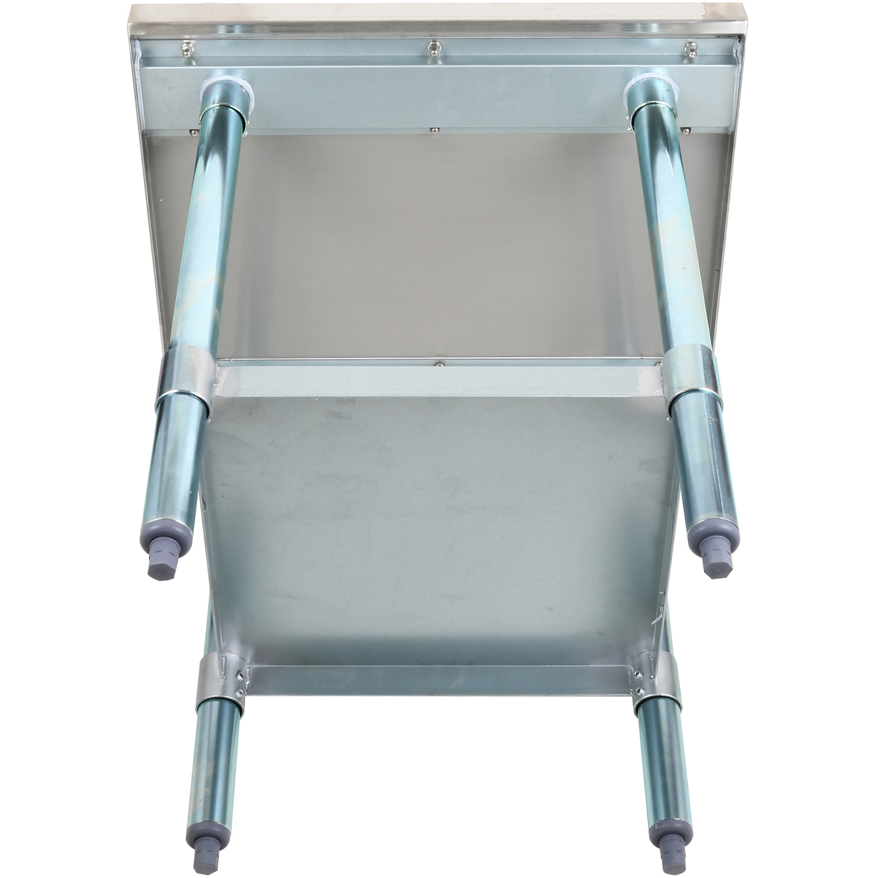 Hämmastav hinna ja kvaliteedi suhe professionaalse roostevabast terasest seadmete alus tsingitud terasest alumise riiuliga. See seadmete alus on ideaalne igasse restorani, hotelli või sarnasesse toitlustusasutuse kööki. Roostevabast terasest ülemine riiul Tsingitud alumine riiul Mereäärtega 4 küljel Tsingitud jalg ja pistik Plastiku kuuljalad