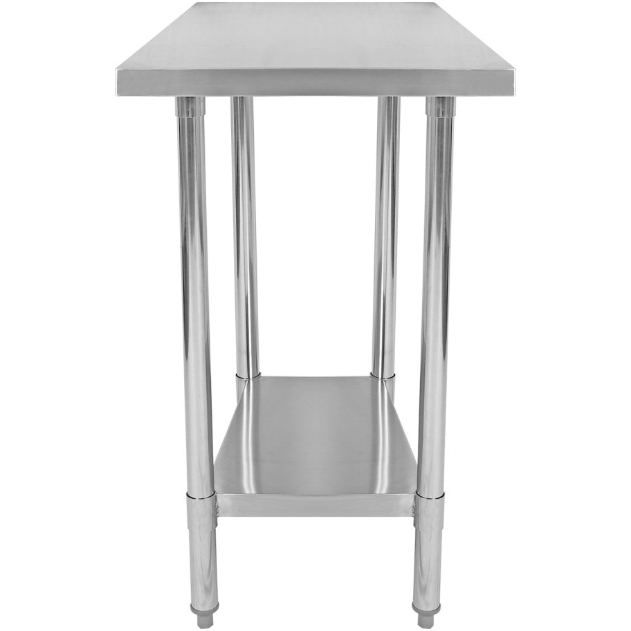 Praktiline töölaud, millel on kaks tasandit töö- ja hoiupinna jaoks. Valmistatud vastupidavast SS201 roostevabast terasest, reguleeritava alumise riiuli kõrgusega ja tugevate ümarate jalgadega. Ideaalne kööki, töötuppa või muudesse professionaalsetesse keskkondadesse.