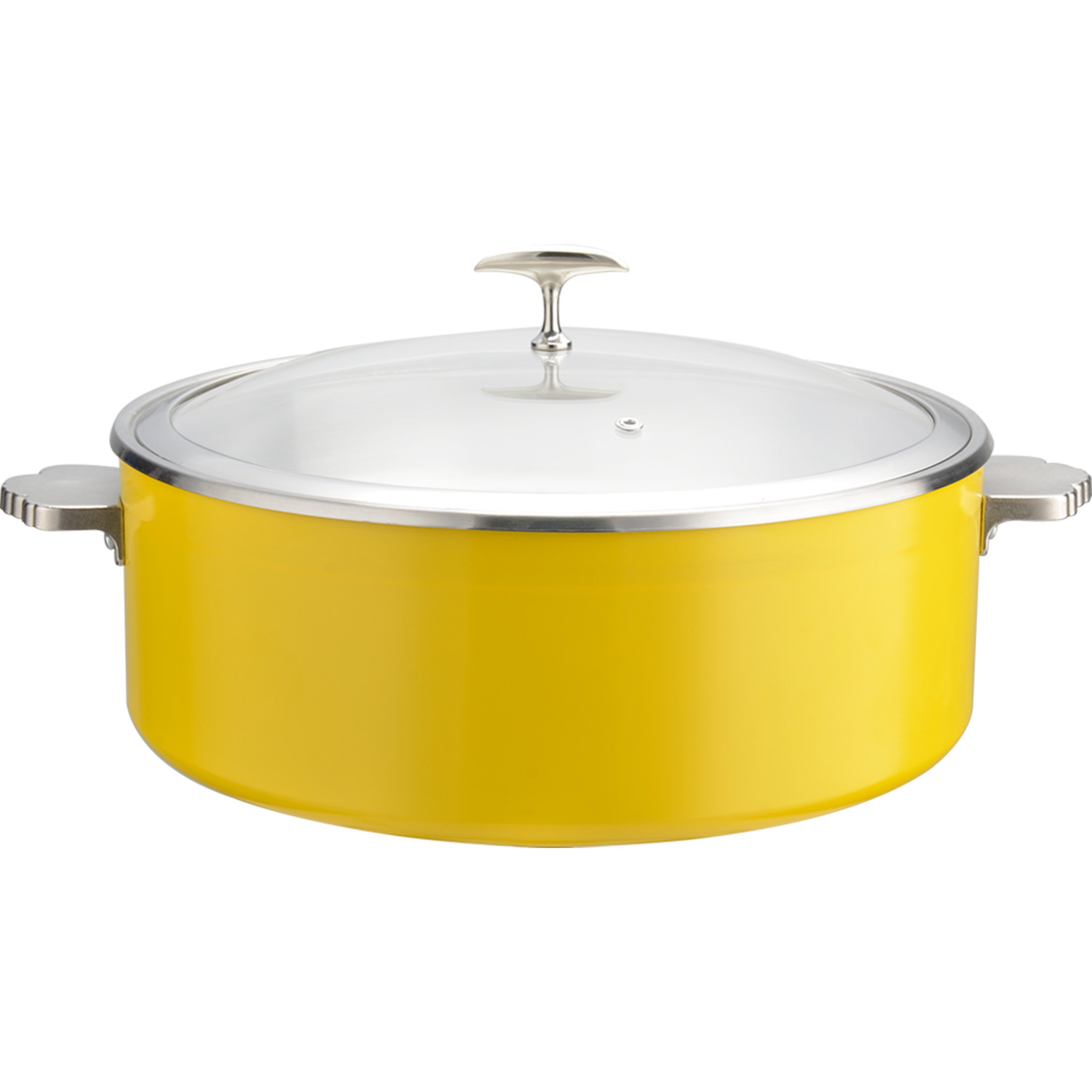 Serveerimis- ja soojenduspott klaaskaanega ning keraamilise sisuga Kolmekihiline haamerdatud pind ⌀320x120mm Kollane | Adexa E0912005M