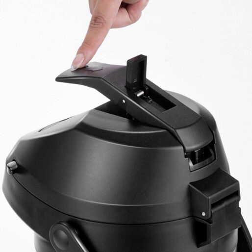 See professionaalne pumbaga õhupott on mõeldud intensiivseks kaubanduslikuks kasutamiseks. See õhupott on väga vastupidav ja seetõttu ebatõenäoline purunema transpordi või kasutamise ajal, samas kui vajutusnupu mehhanism on mõeldud pidevaks kasutamiseks ja tihedateks üritusteks. Topelt roostevabast terasest vaakumkorpus PP plastikust pea, käepide ja alus Survejõul töötav pumbastiil
