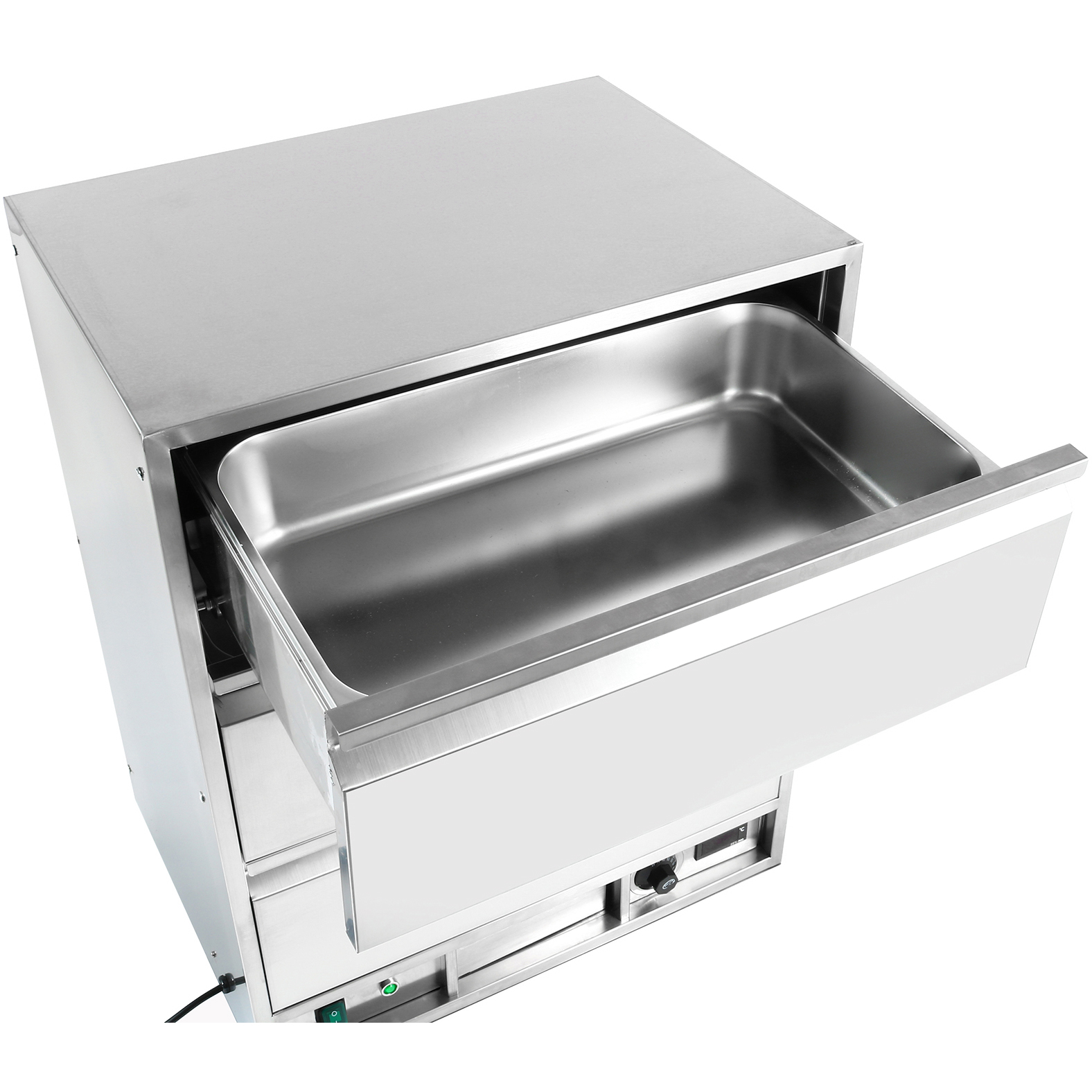 See ühe sahtliga soojendaja sisaldab süsteemi, mis tagab toidule õrna kiirguskütte. Selles sahtlis soojendatud toidud jäävad kauem niiskeks, maitsekaks ja ahvatlevaks! Kogu roostevabast terasest struktuur Termostaadiga juhitav, vastupidav ja tugev Lüliti koos valgustusega Raskekujuline konstruktsioon Erilise kujuga küttekeha ühtlase kuumuse jaotamiseks