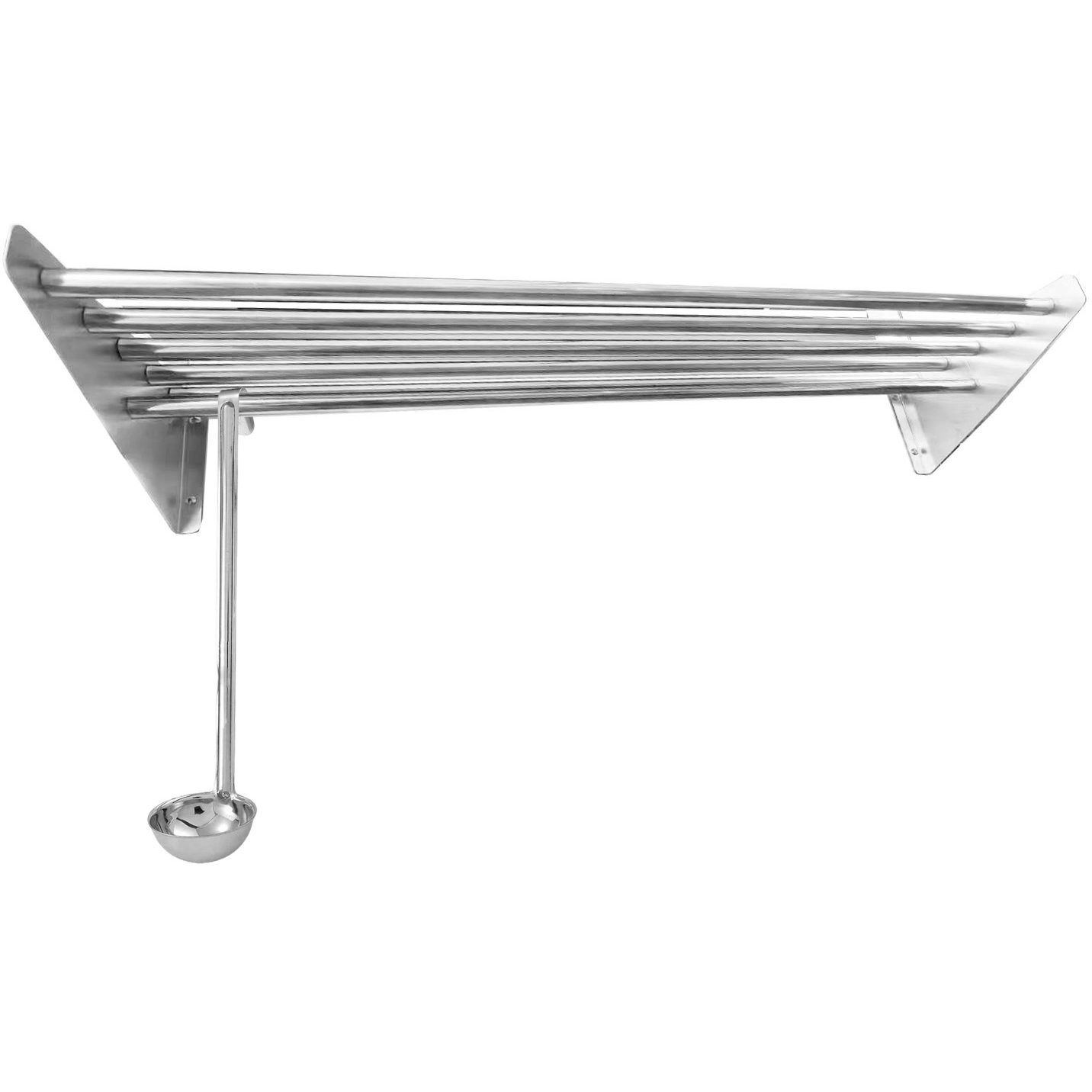 Kui juhite ärikööki, teate, kui oluline on oma ruumi tõhusalt hallata. See mugav seinale kinnitatav riiul pakub tõhusat viisi täiendava pinnaruumi loomiseks ladustamise ja organiseerimise jaoks. Ideaalne klaasialuste, transpordikastide või muu varustuse hoidmiseks, on see tugev torukujuline riiul hädavajalik täiendus igasse kiire tempoga nõudepesuruumi või kööki!