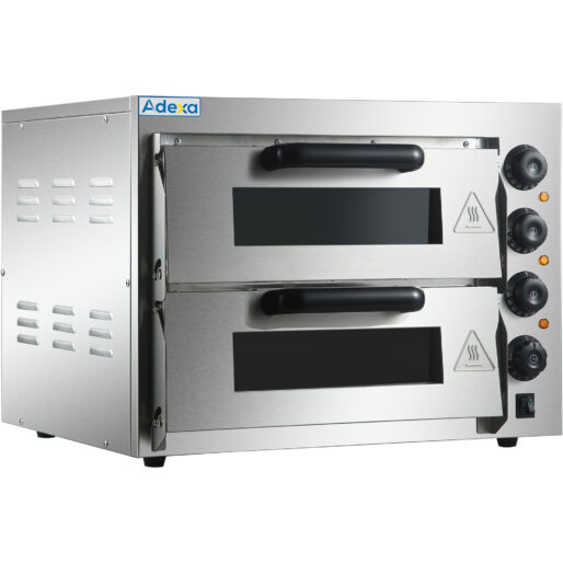 Algne hind oli: 1379,77 €.634,70 €Current price is: 634,70 €.pitsaahi koos alusega Elektriline 2 kambrit 9+9 pitsat x 33 cm 500°C Mehaanilised juhtnupud 16,8kW 400V | Adexa PS802