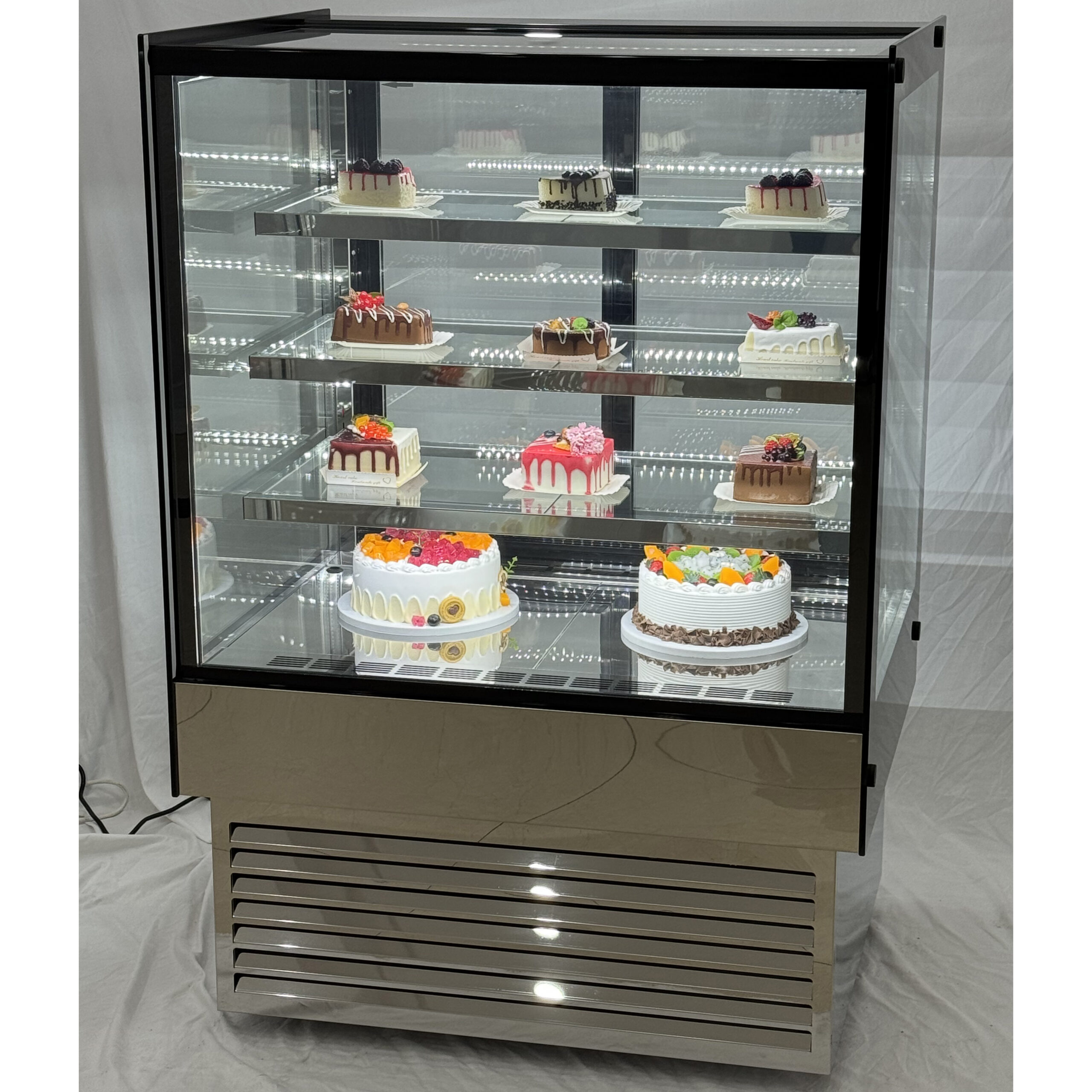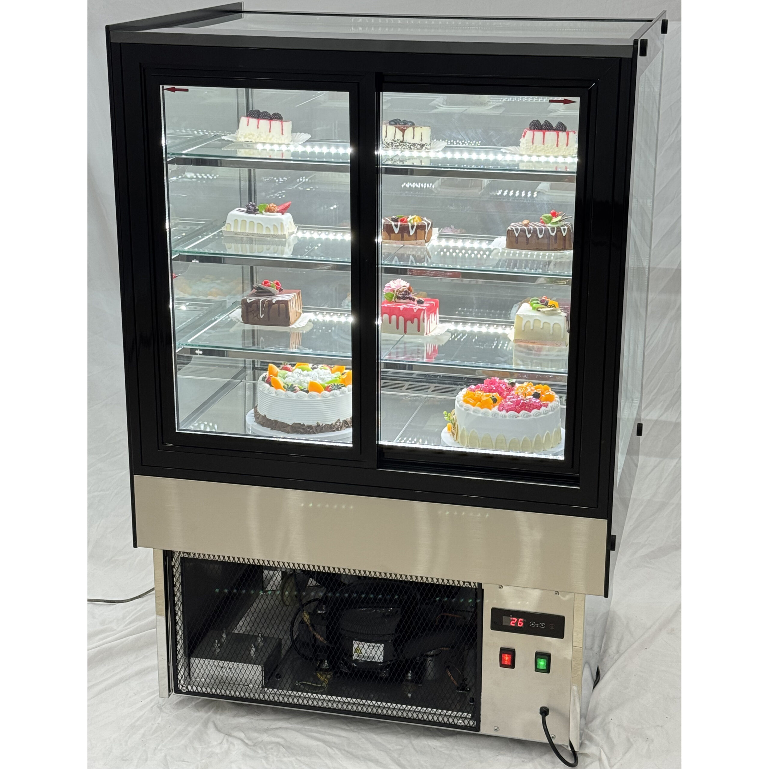 Professionaalne jahutatud kaubandusseade, ideaalne kookide ja saiakeste eksponeerimiseks kohvikutes, restoranides või poodides. Suurepärane hinna ja kvaliteedi suhtega jahutatud vitriiniühik. Täiuslik letipealne vitriinikülmik äriliseks kasutamiseks. Mahutavus: 366L3 riiulit Roostevabast terasest peegelpõhi LED-valgustus 0 kuni +10cVentileeritud jahutus DokumendidKlikkige siia, et alla laadida energiakleebisKlikkige, et alla laadida tehniline joonisPalun vaadake rubriiki ‘Spetsifikatsioon’ üksikasjaliku teabe saamiseks.