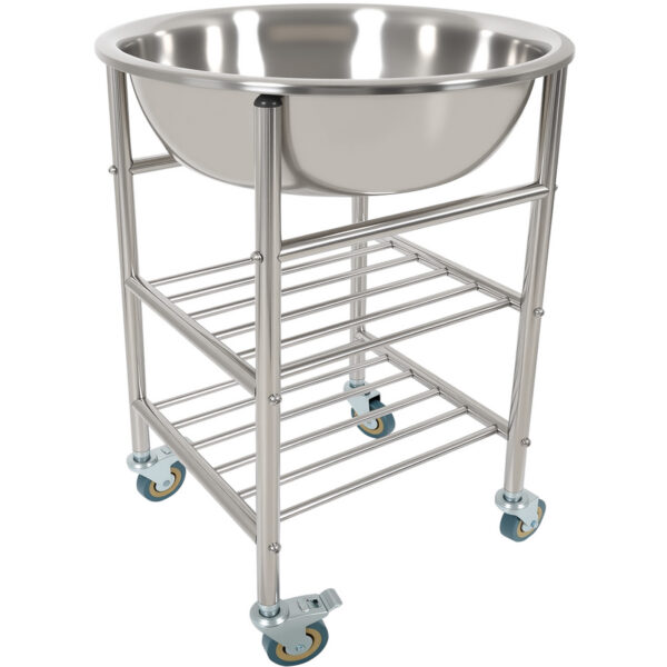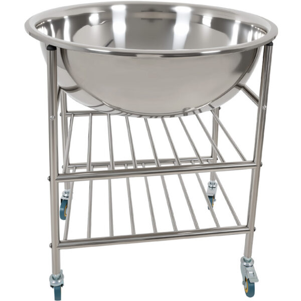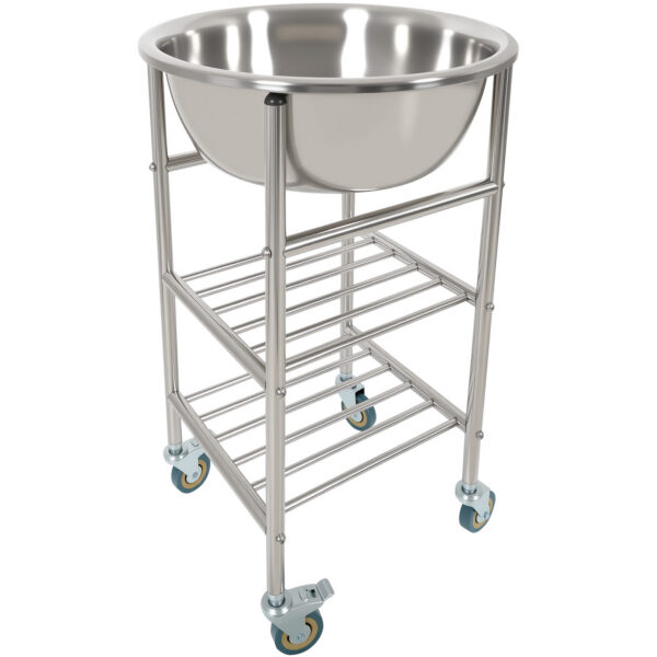 Algne hind oli: 122,52 €.84,54 €Current price is: 84,54 €.Roostevabast terasest segamiskausi käruga koos kausi ja 2 riiuliga 622x457x838mm | Adexa MBXS002