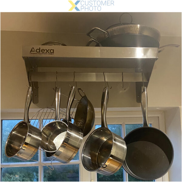 Algne hind oli: 149,06 €.50,68 €Current price is: 50,68 €.Seinariiul pottide hoidikuga 12 konksu Roostevaba teras 900x300x300mm | Adexa VMR0930