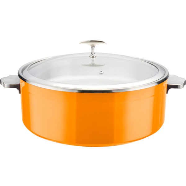 Serveerimis- ja soojenduspott klaaskaanega & roostevabast terasest sisuga Kolmekihiline haamerdatud pind ⌀320x120mm Oranž | Adexa E0912015
